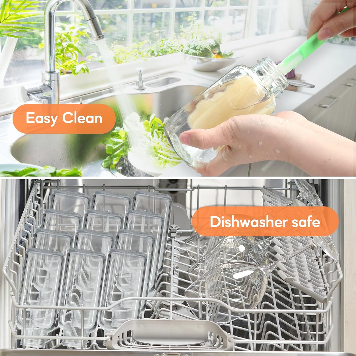 - Effortless Maintenance: Top-rack dishwasher safe; soft sponge brush effortlessly cleans square bottle corners with contoured design; flexible material conforms to angles for quick residue removal; gentle on glass with no scratching risk
