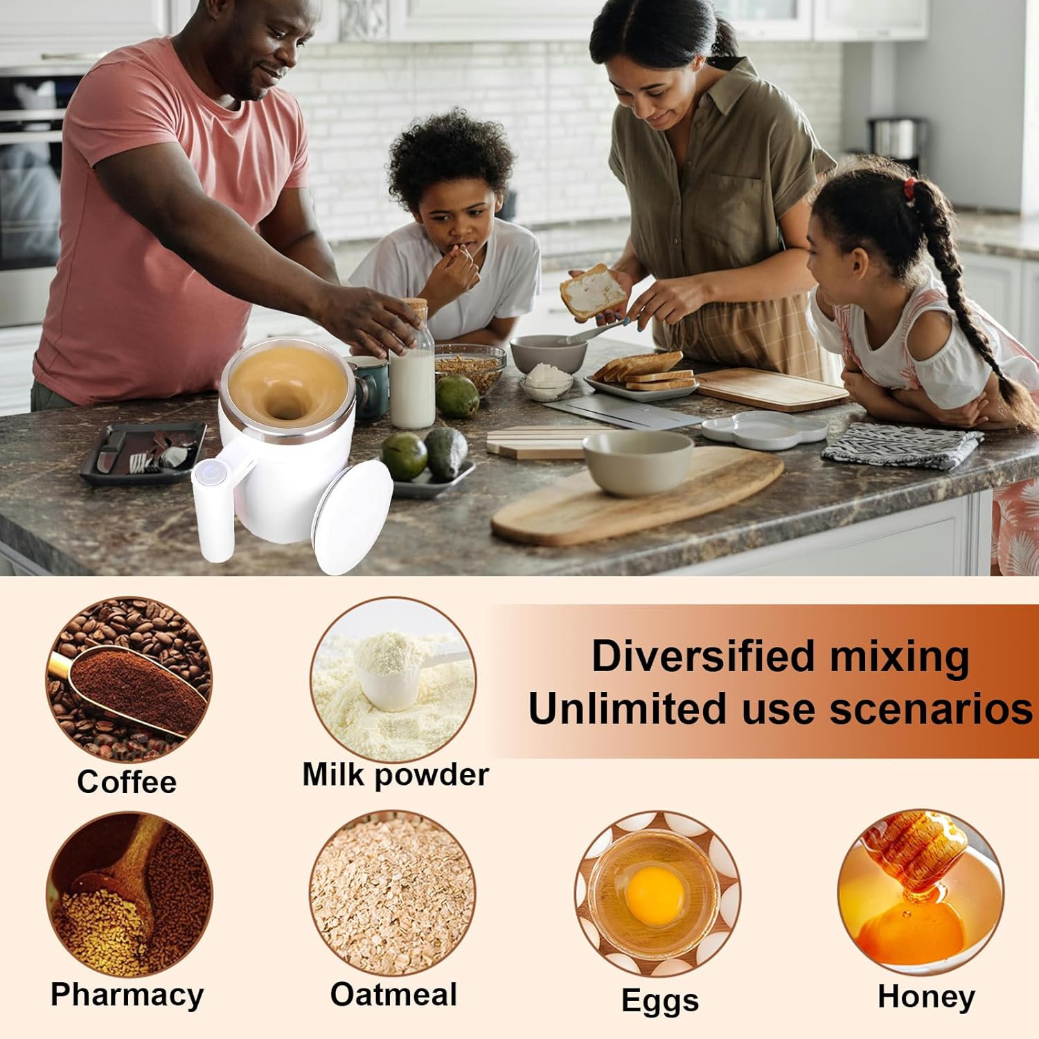 Self Stirring Coffee Mug-Automatic Magnetic Stirring Cup for Easy Mixing | USB Rechargeable with 304 Stainless Steel Interior,Silicone Lid,Ideal for Coffee,Cocoa,Milk