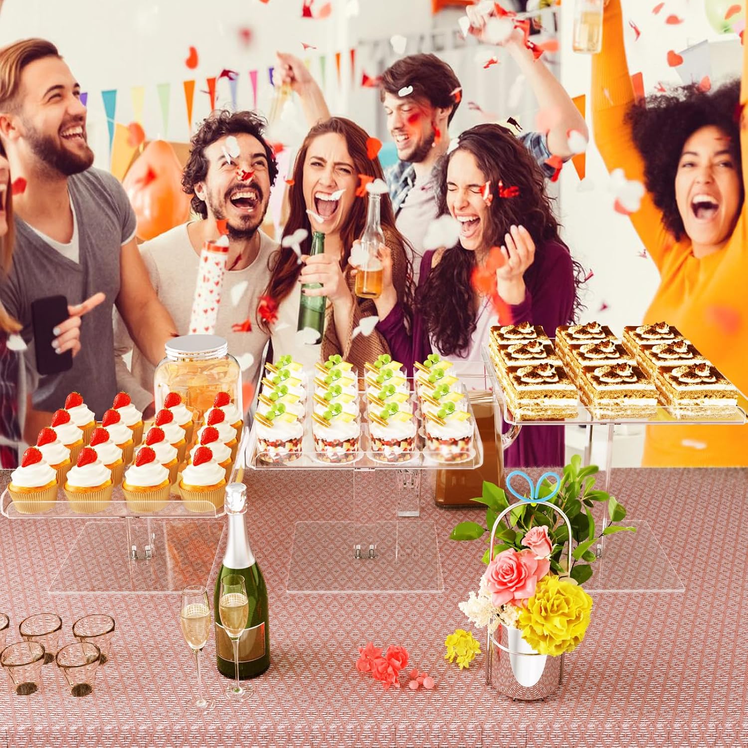 - Impressive Details: Featuring 0.12-inch thick acrylic, these cupcake stands are incredibly strong and durable. The smooth, scratch-resistant edges and open-ended design facilitate effortless cleaning. The acrylic dessert display's fence is seamlessly formed through a hot bending process, eliminating the need for adhesives and ensuring no chemical odors.