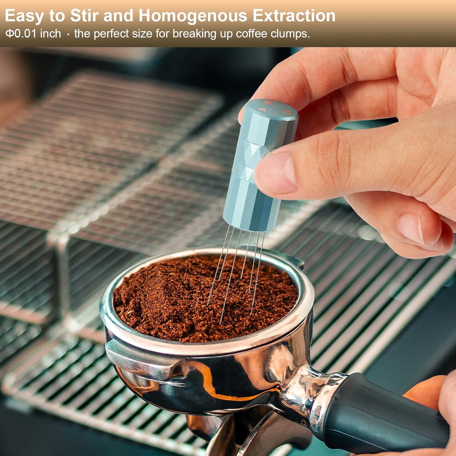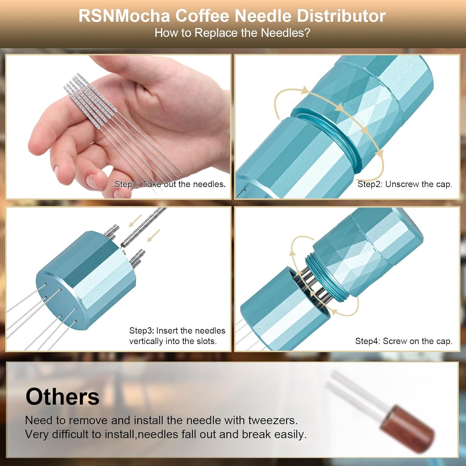 - 【Safe & High-Quality Material】RSNMocha WDT tool for espresso machine accessories is plastic free and made of food-grade 304 stainless steel,6* Φ0.25mm needles, the ideal size to break coffee clumps,it is flexible and durable.
