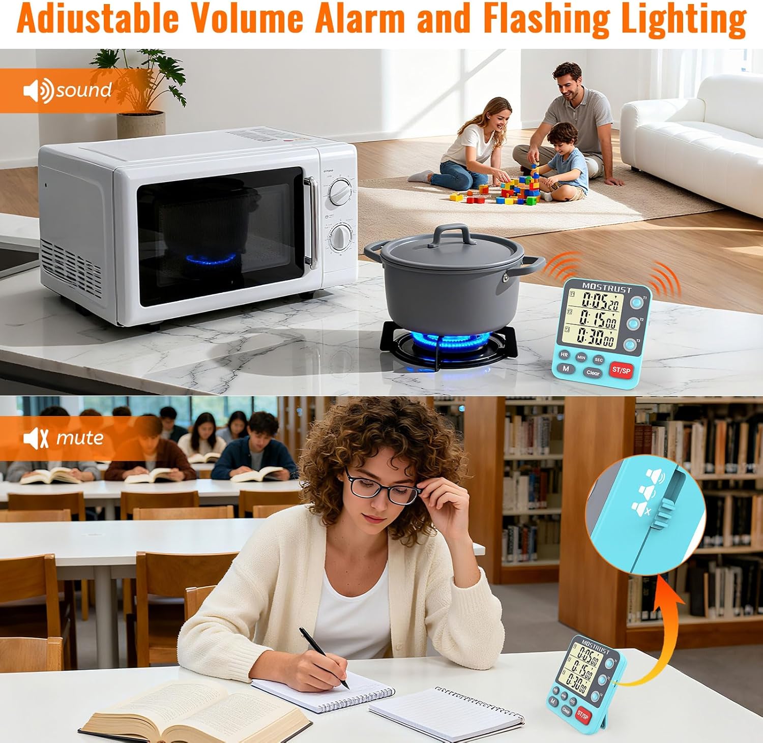 - 【LARGE DISPLAY & EASY TO USE】The triple cooking timer with screen protector and high contrast large display provides a clearer bold numbers, which make it easier to read. Meanwhile Press "CLEAR" to set to ZERO, and then start timing! Simple and easy button design, kids also can use it without thinking.