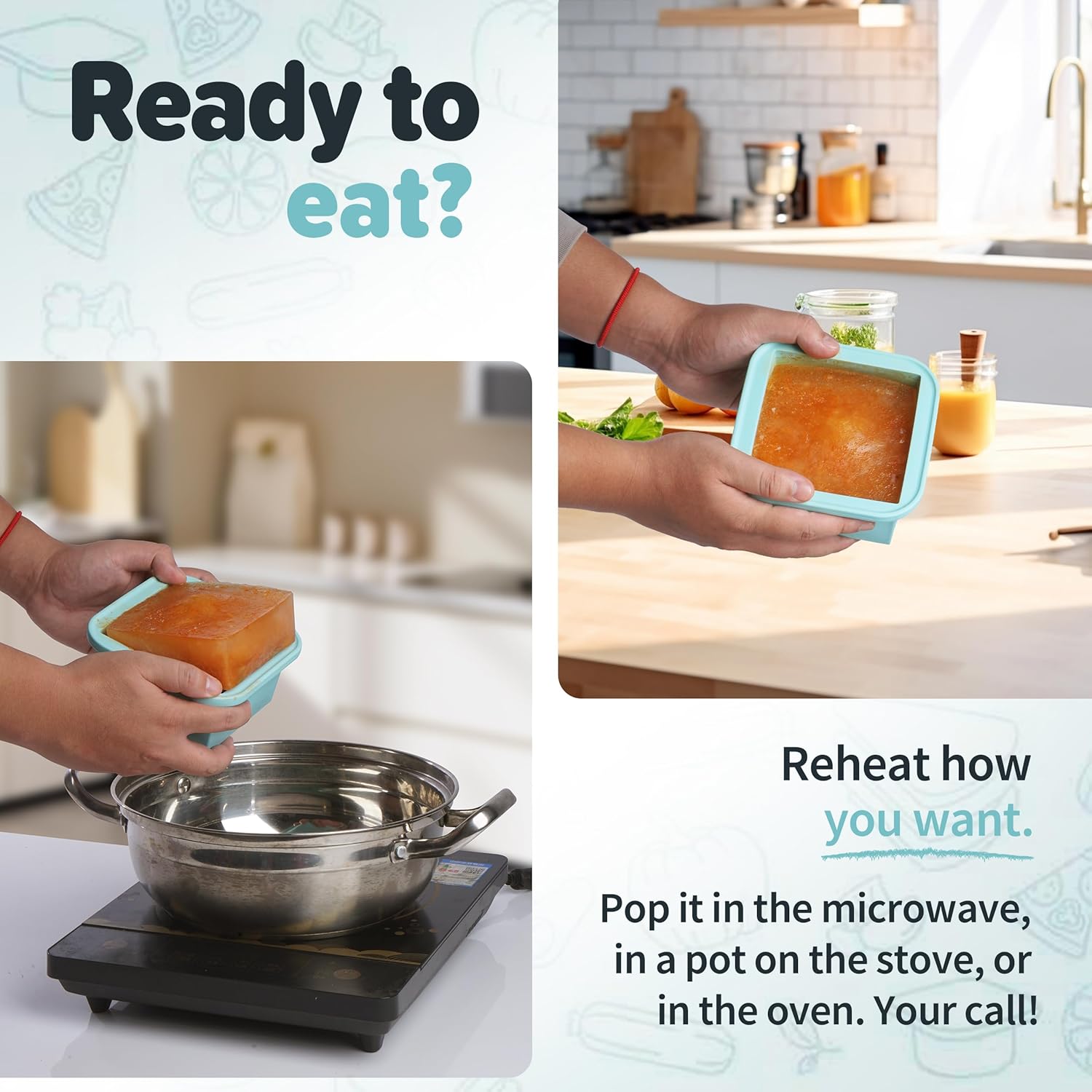 - VERSATILE & CONVENIENT FOR ANY KITCHEN TASK Use them for: Freezing homemade soups, sauces, and broths Storing baby food and portioning snacks Baking (up to 415°F without the lid) Making ice cubes, chocolates, and more! Dishwasher-safe for quick and easy cleaning, they save you time in the kitchen.