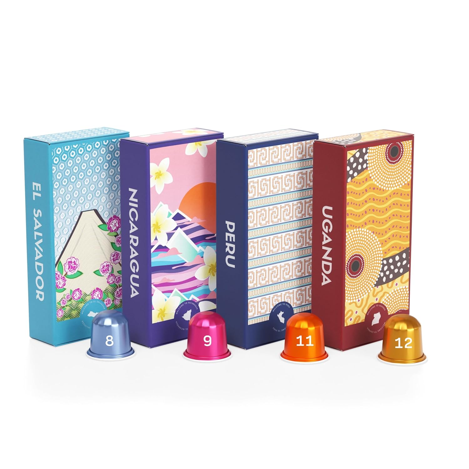 - FLAVOR FOR REAL: Explore El Salvador (red grape + cinnamon), Nicaragua (cajeta + banana), Peru (milk chocolate + cream) and Uganda's (dried fig + cherry) vibrant tasting notes. Freshly roasted and ready to deliver a flavorful and rich shot of espresso. This premium, single-origin coffee is 100% Arabica.