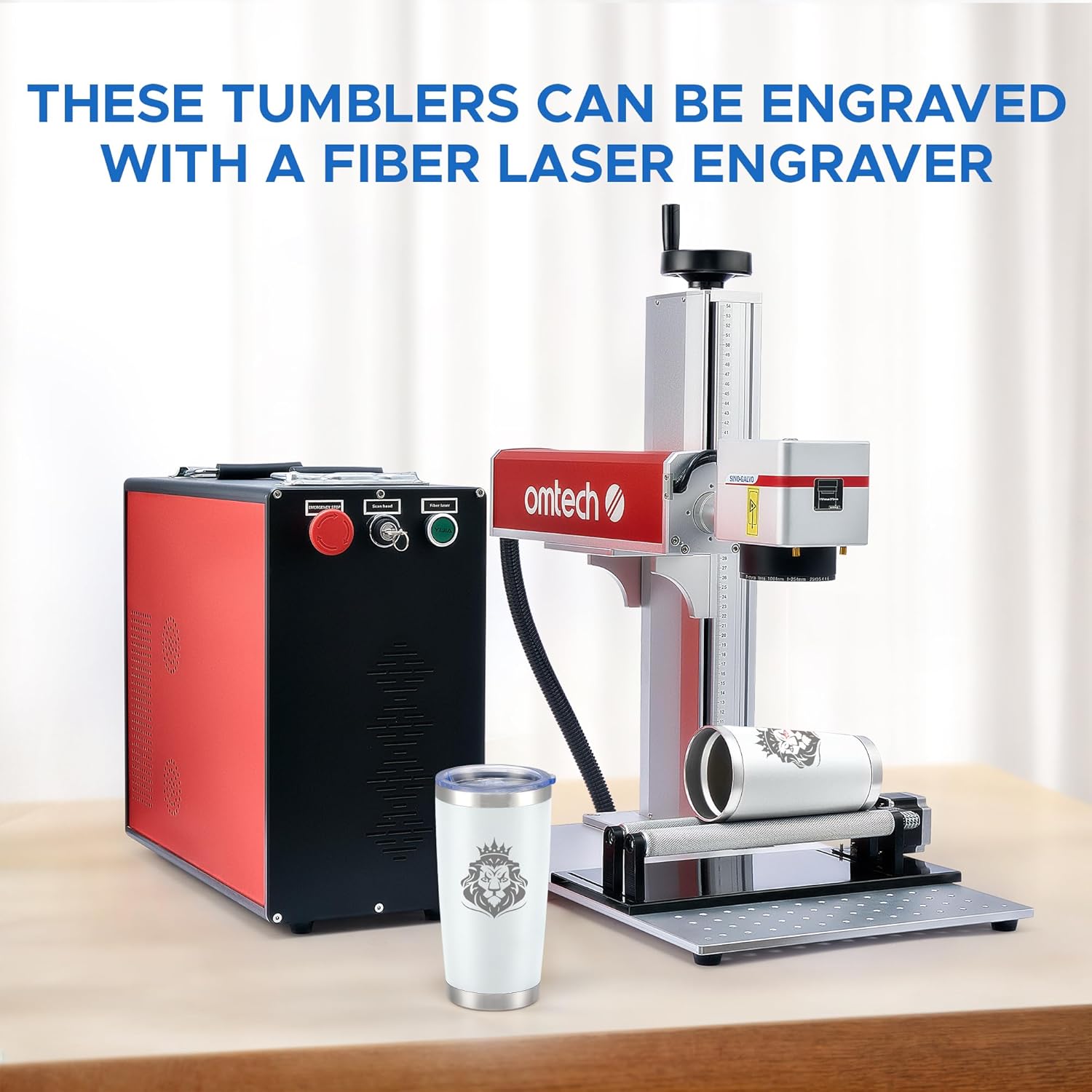 OMTech 20oz Tumblers Bulk, 6pc Stainless Steel Tumbler Set with Lid & Straw, Double Wall Vacuum Insulated Mug for Laser Engraver, Travel Coffee Mug for Hot & Cold Drinks, White Powder Coated Cup