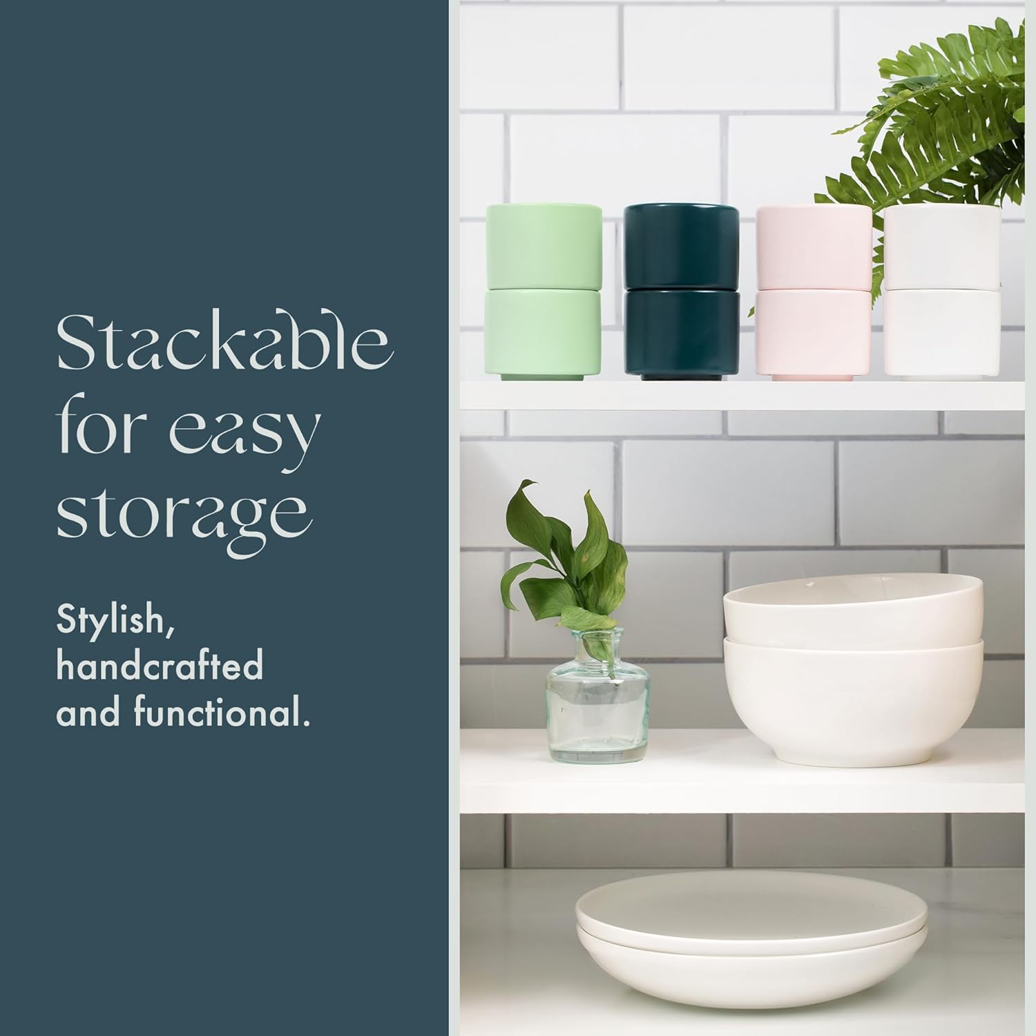- THICK WALLED, HANDLELESS, STACKABLE: Our mug has a thick layer of ceramic, meaning your coffee, espresso, or matcha will remain warm while you sip. Our carefully crafted cup stacks for easy storage in your cupboards.