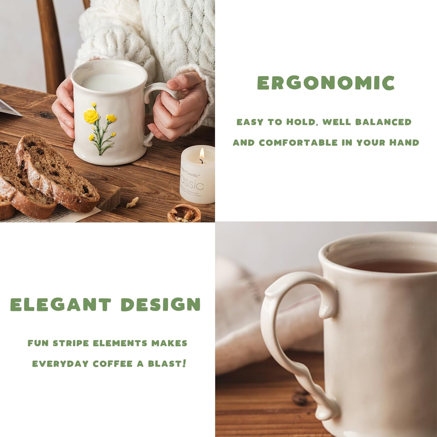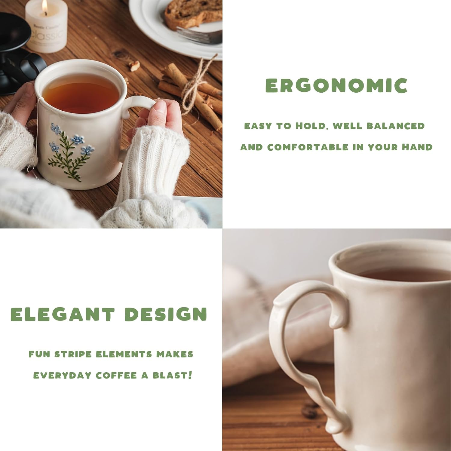 - Decorate your Life: The color is perfect so the mug matches any kitchen or home decoration style. The smooth glaze is elegant and it is suitable for home use. The coffee mugs set is also a perfect gift for family and friends.
