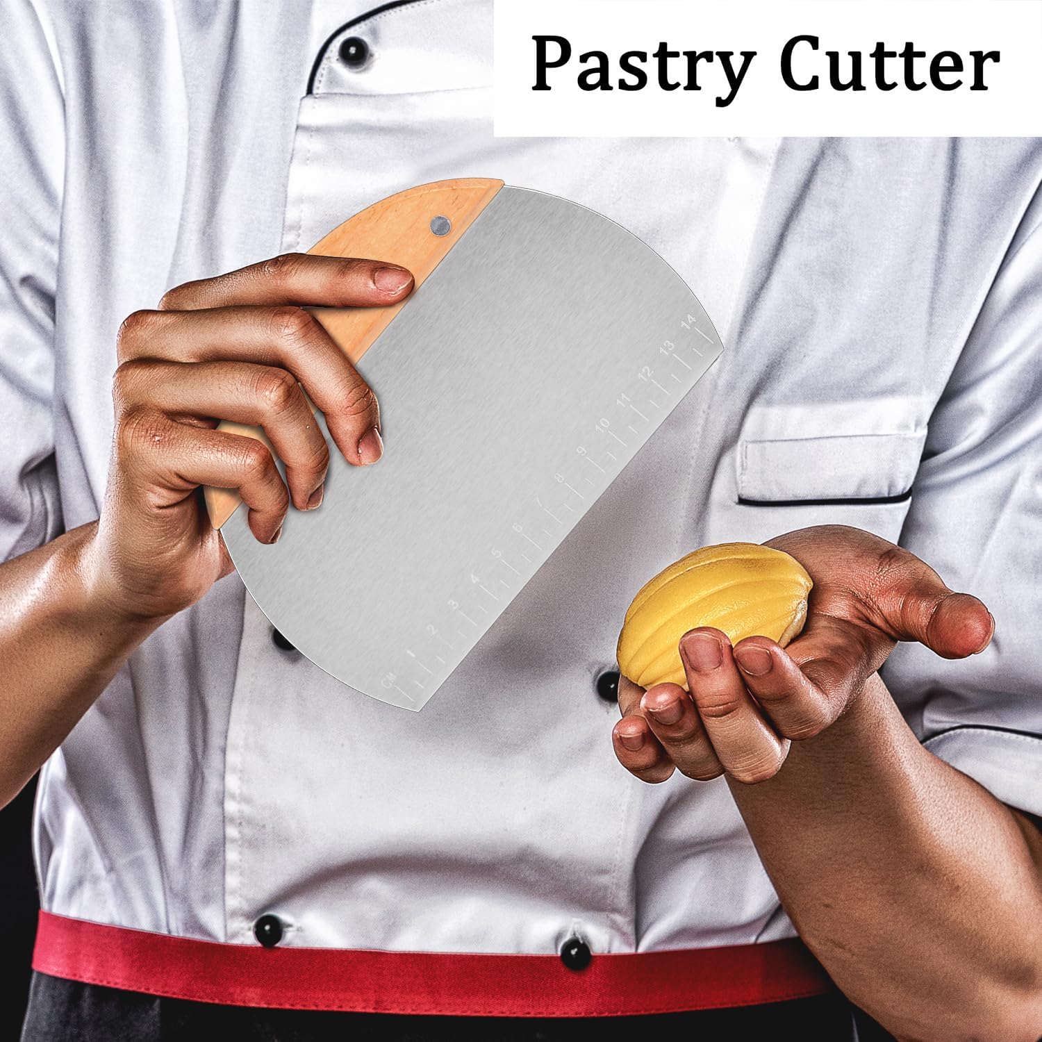 Kichwit 304 Stainless Steel Grill Scraper with Wood Handle, Pizza Dough Cutter, Multi-Purpose Scraper for Cooking, Scraper Tool Kitchen, 1 Pack