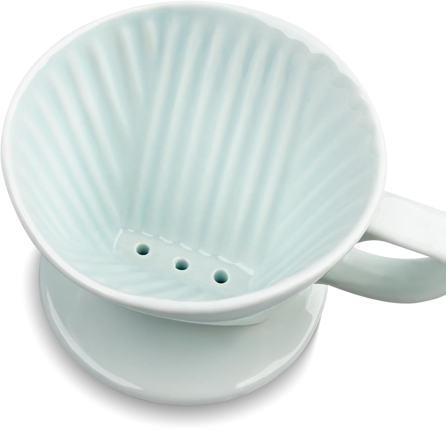 Handmade Pour Over Ceramic Coffee Dripper - Authentic Brewing Experience for Camping, Office, and Home (Blue)