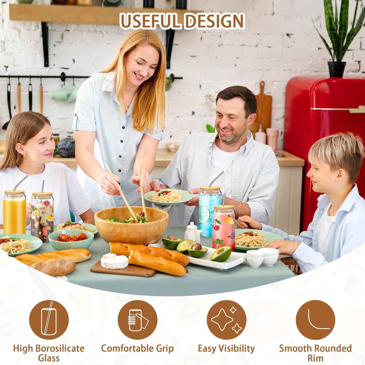 - Easy to Clean: These glass cups with bamboo lids and stainless steel straws are crystal clear so that stains can't escape and you can easily wash them off. Can glass cups with wide-mouth design can help you easy to fill and pour. Easy to clean after use