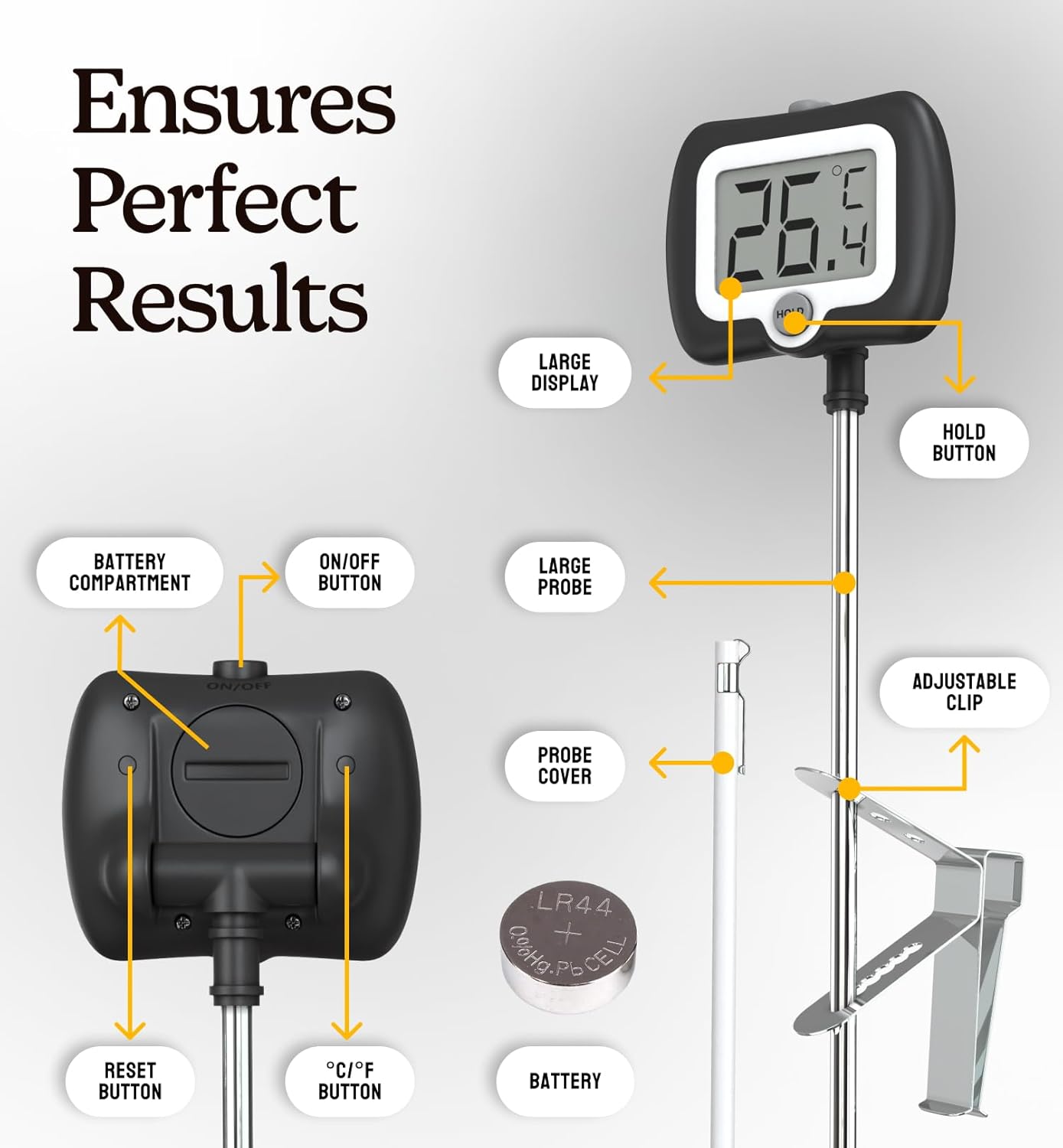 - Digital LCD Display for Easy Reading: Still using inaccurate analog thermometers? This deep fry thermometer shows precise temperature readings in clear, legible digits using its large LCD display