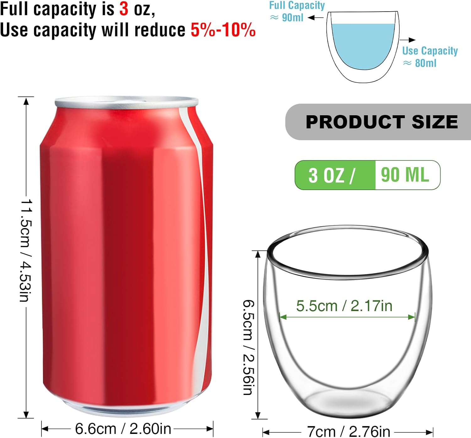 - Material Glass : Capacity 3 Fluid Ounces