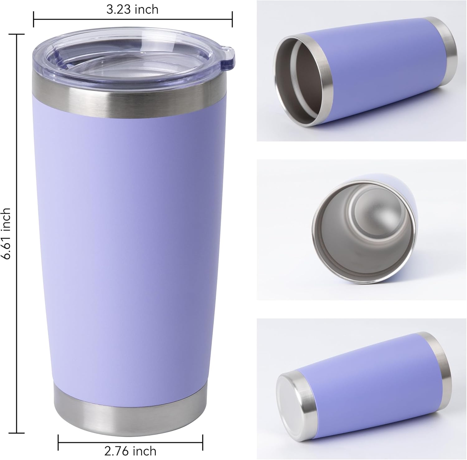 HASLE OUTFITTERS 20oz Stainless Steel Tumblers Bulk, Insulated Travel Cup with Lid, Double Wall Vacuum Coffee Mug for Cold & Hot Drinks 1 Pack, Light Purple