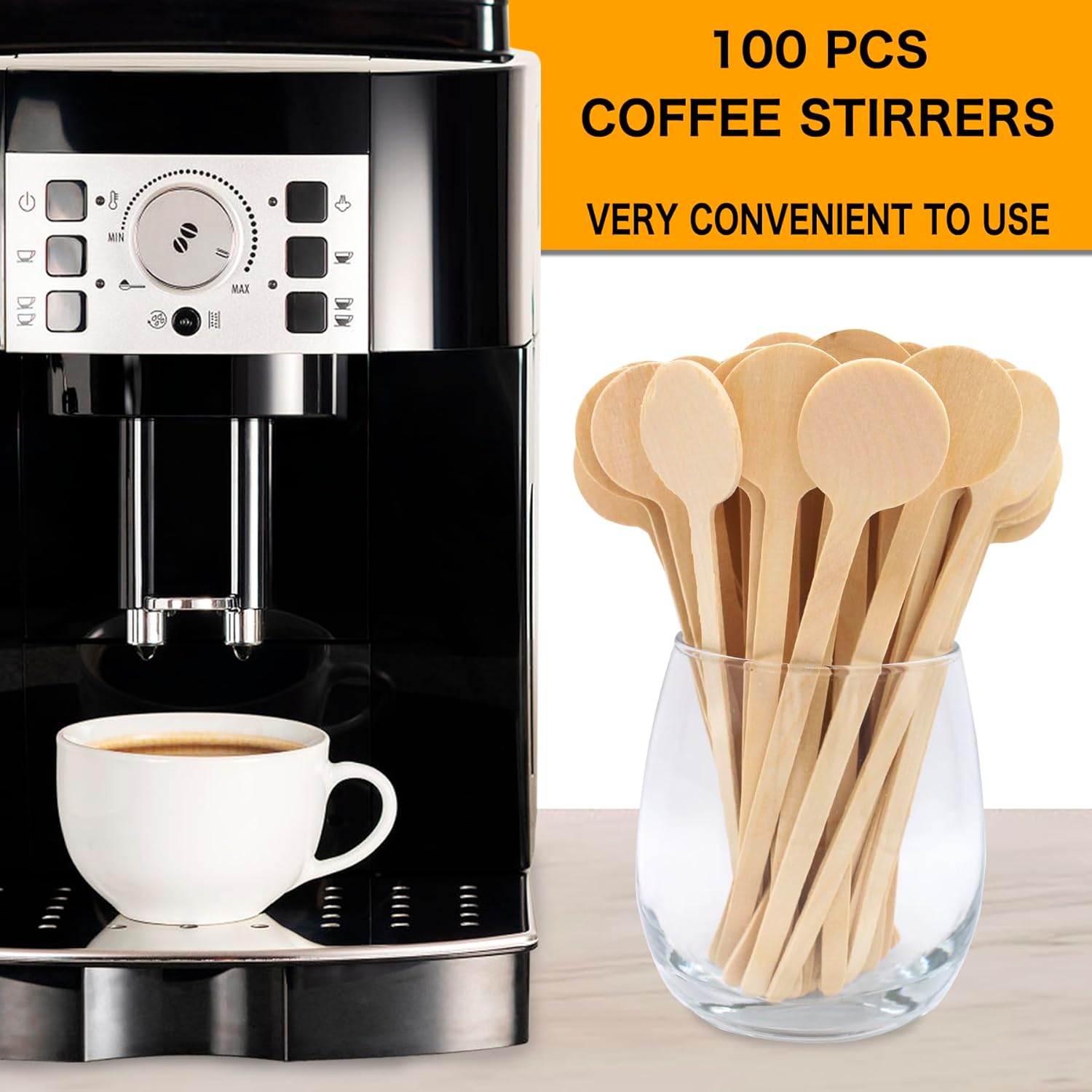 - [SPECIFICATIONS] - Wooden coffee stirrers 100pcs with 6 inch(150mm)x(6mm) .Round end of the stir sticks is easy to grip and helps to stir coffee better. A+++level,Smooth rounded edges.
