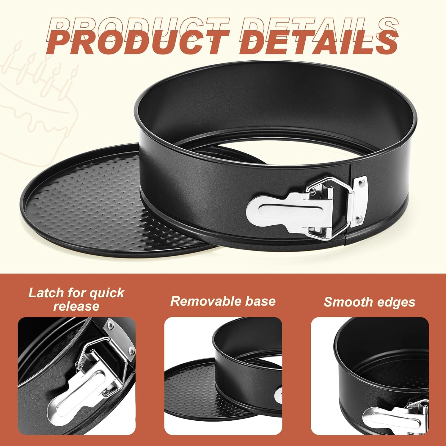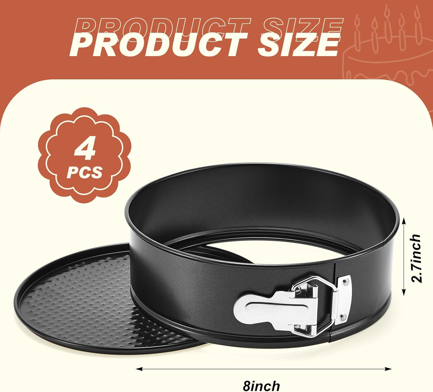 - Stainless Steel Spring Buckles Design: the stainless steel spring buckles of this cake pan round have been upgraded, which are more sturdy and easier to switch, but will not fall off or break, making it easy to pull the cake out nicely
