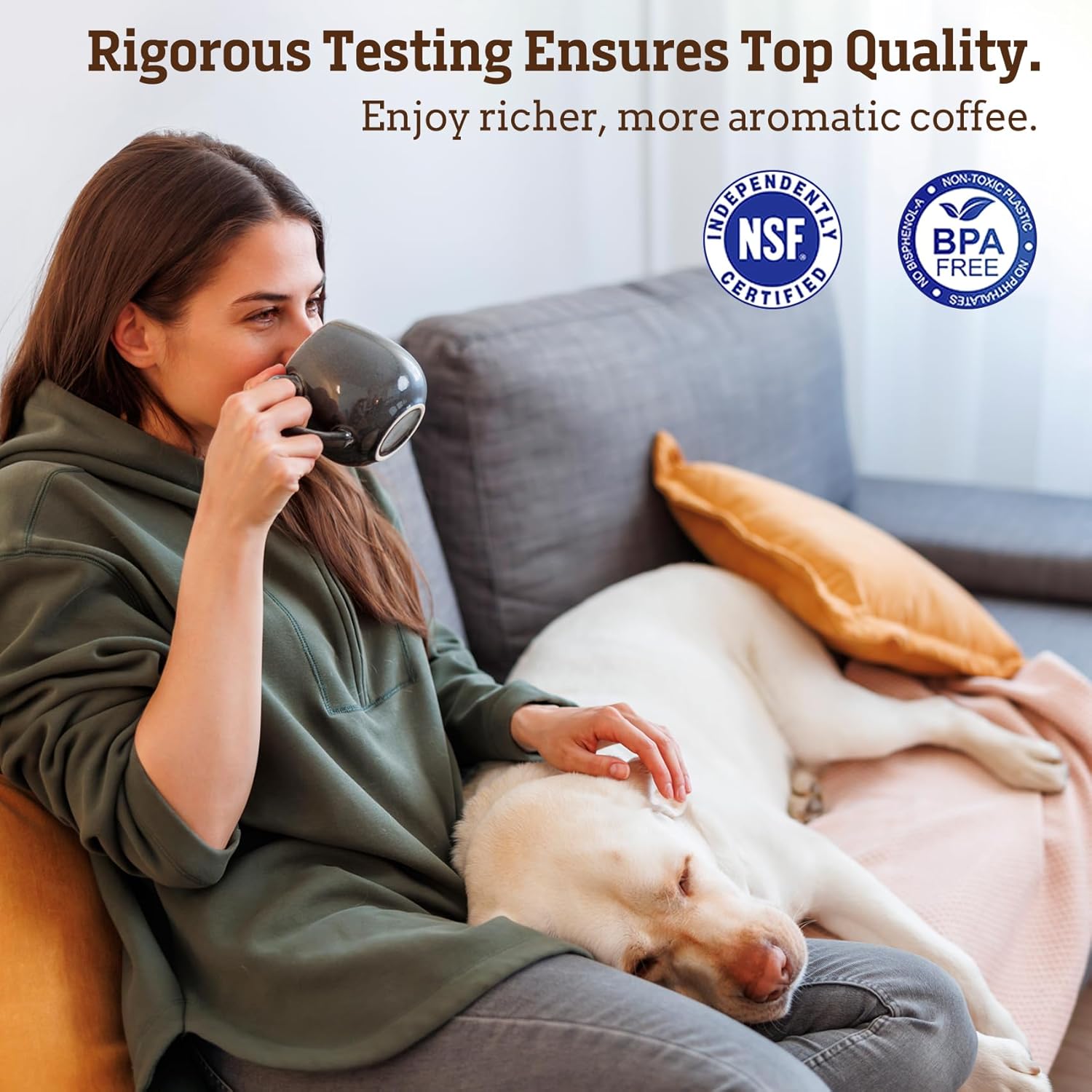 - ADVANCED FILTRATION TECHNOLOGY - Utilizes premium microfiltration with coconut-activated carbon and ion exchange. Effectively reduces scale buildup while preserving essential minerals, enhancing the flavor of your coffee for a richer, smoother taste every time.