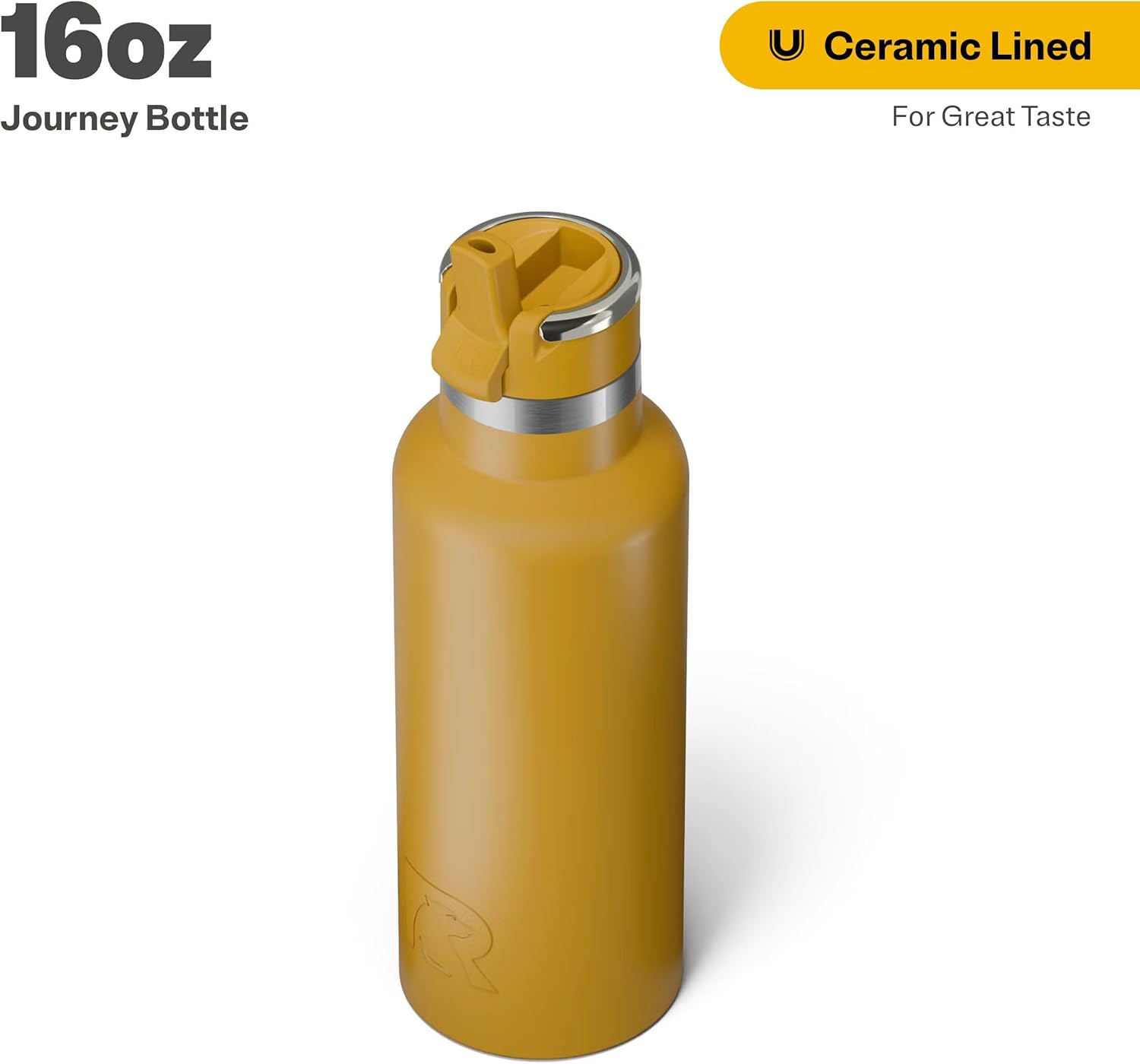 - STAY HYDRATED ON-THE-GO: Featuring a built-in, recessed handle, the RTIC Journey Bottle is easy to grab and carry wherever you go. Attach this stainless steel water bottle securely to any bag or backpack with a personal carabiner for hands-free convenience.