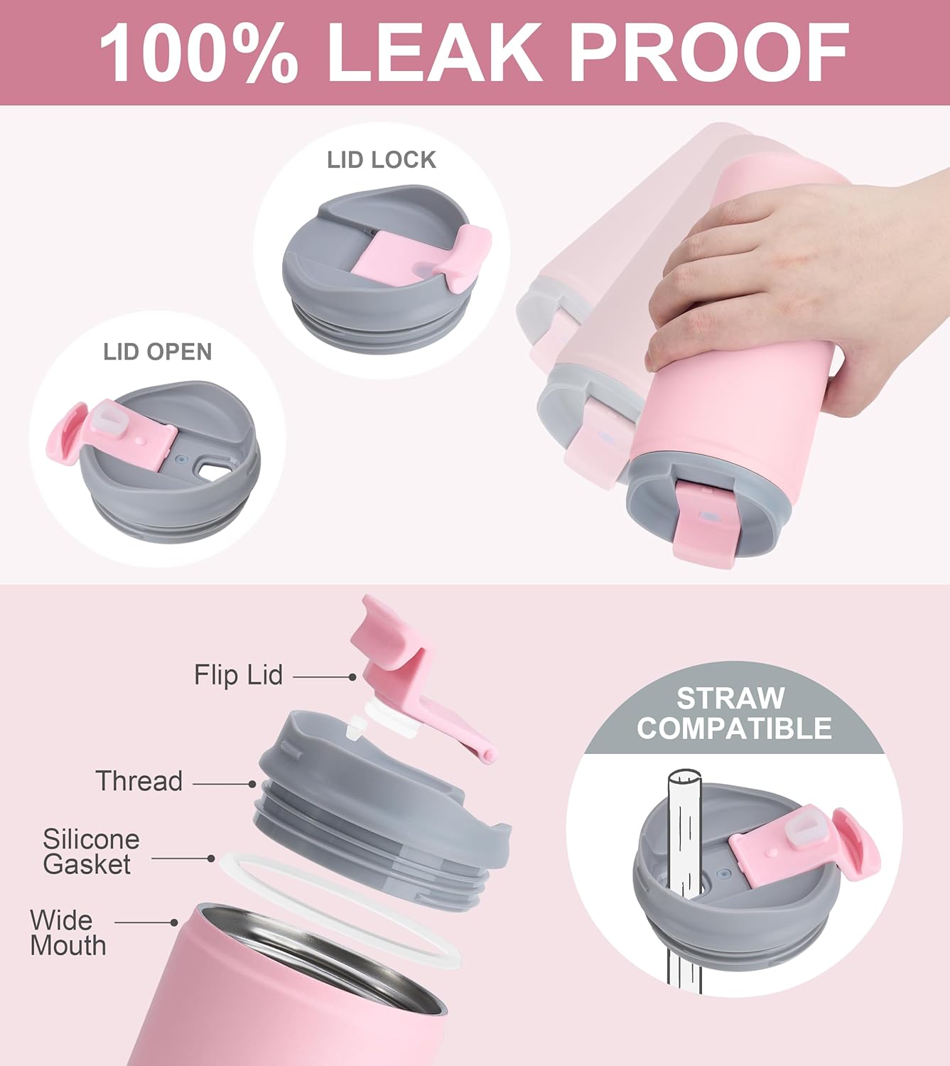 - Leak Proof Screw-on Lid: BPA Free, silicone gasket seals; easy sipping, straw friendly