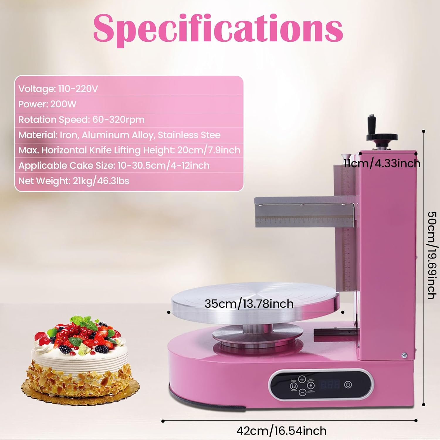 Cake Decorating Machine 200W Automatic, Tabletop Cake Cream Frosting Machine, Cream Smooth Coating Decoration Machine with LCD Display Type, Use for Cake Shops, Dessert Shops, Households (Pink)
