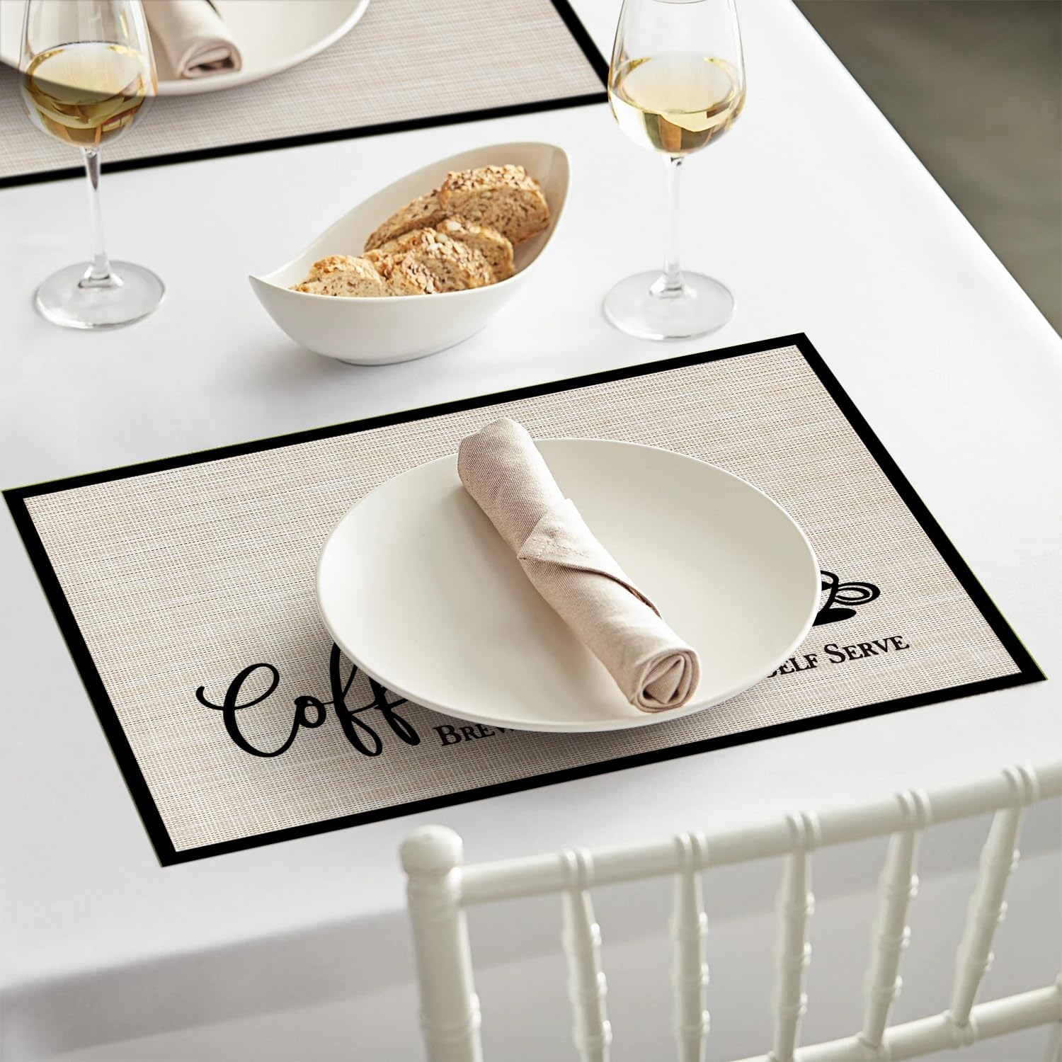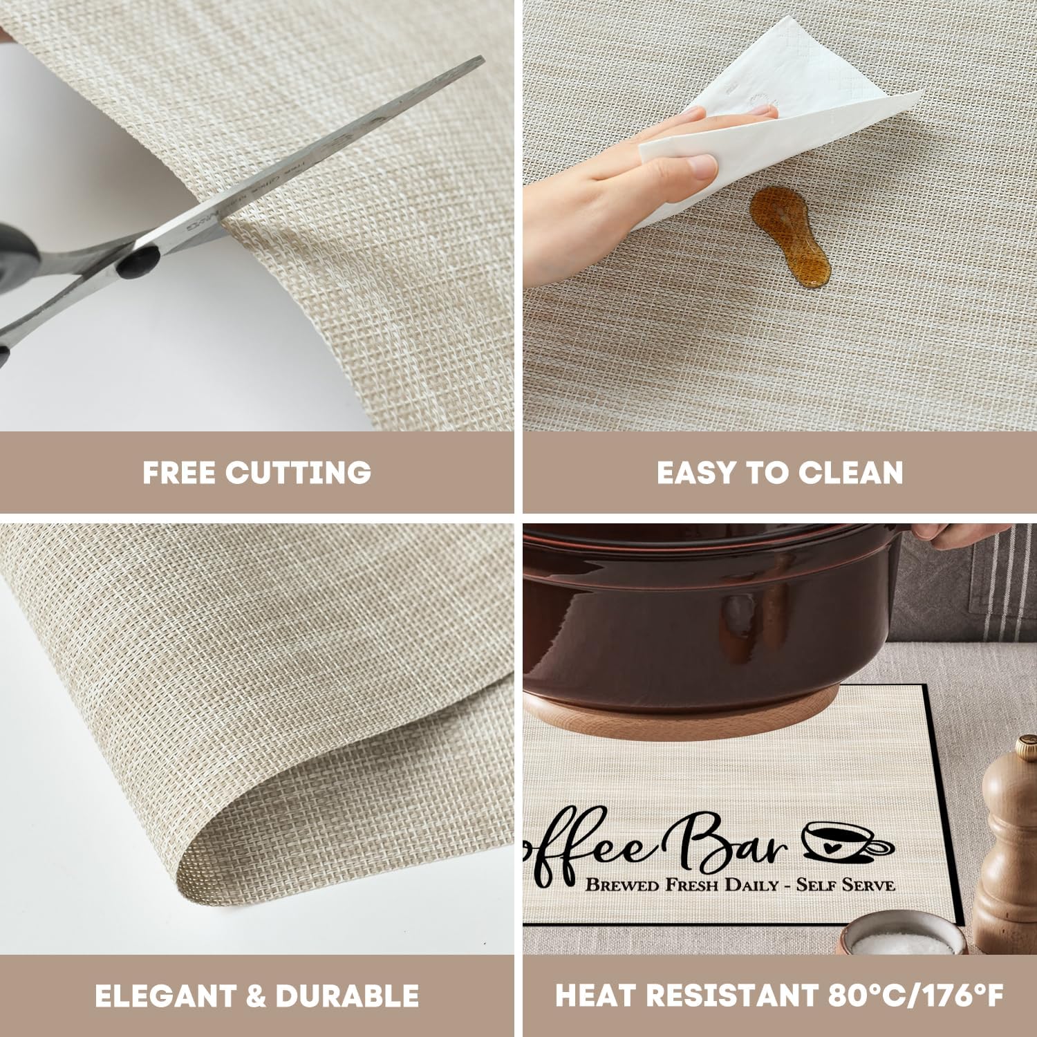 Artoid Mode Coffee Bar Mats Set of 2, 12x18 Inch Washable Non-Slip Plastic PVC Vinyl Table Mats for Coffee Machine, Countertops
