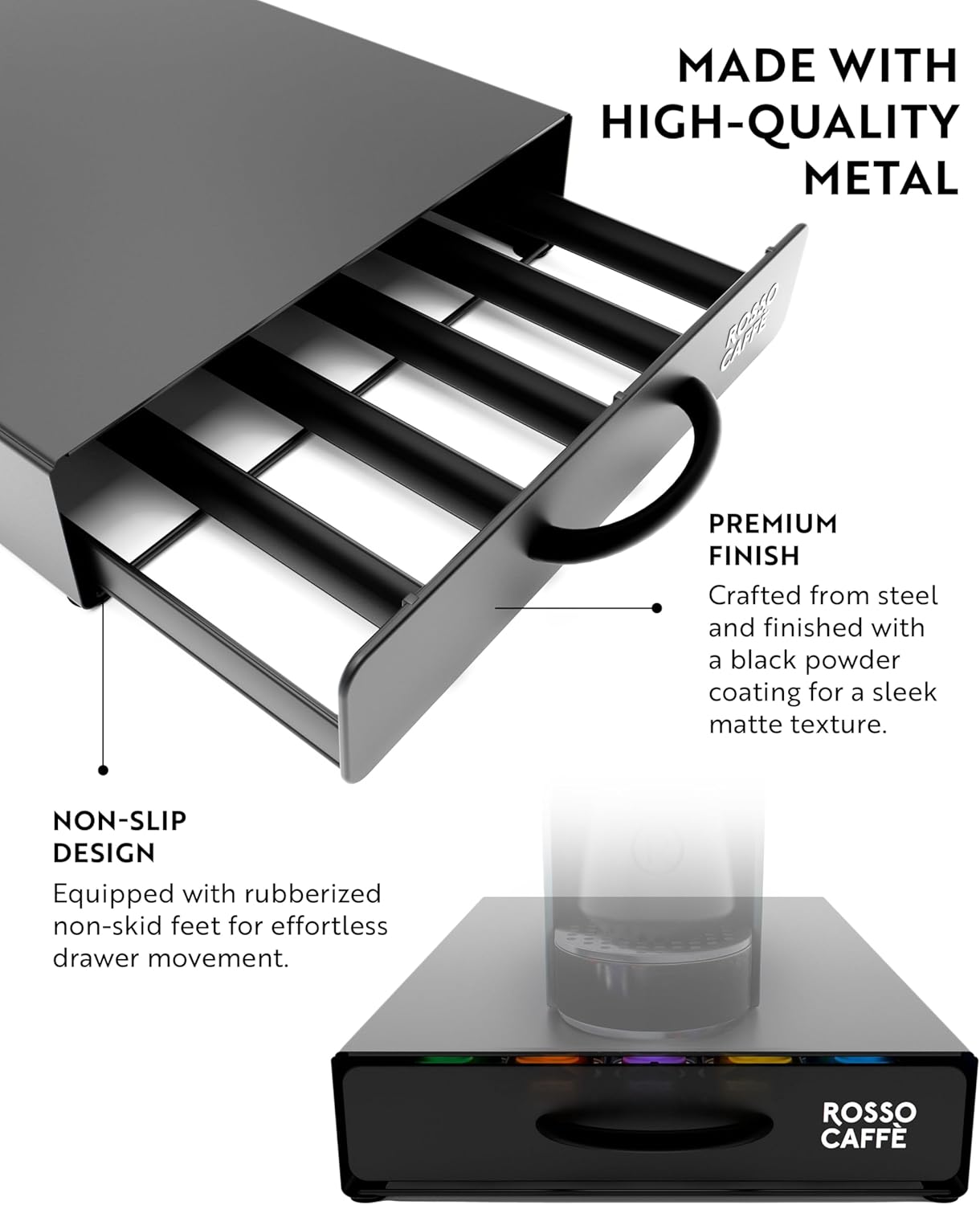 - Anti-Slip Base for Surface Protection – Features a soft, non-slip pad that keeps the capsule drawer stable and protects your kitchen surfaces from scratches.
