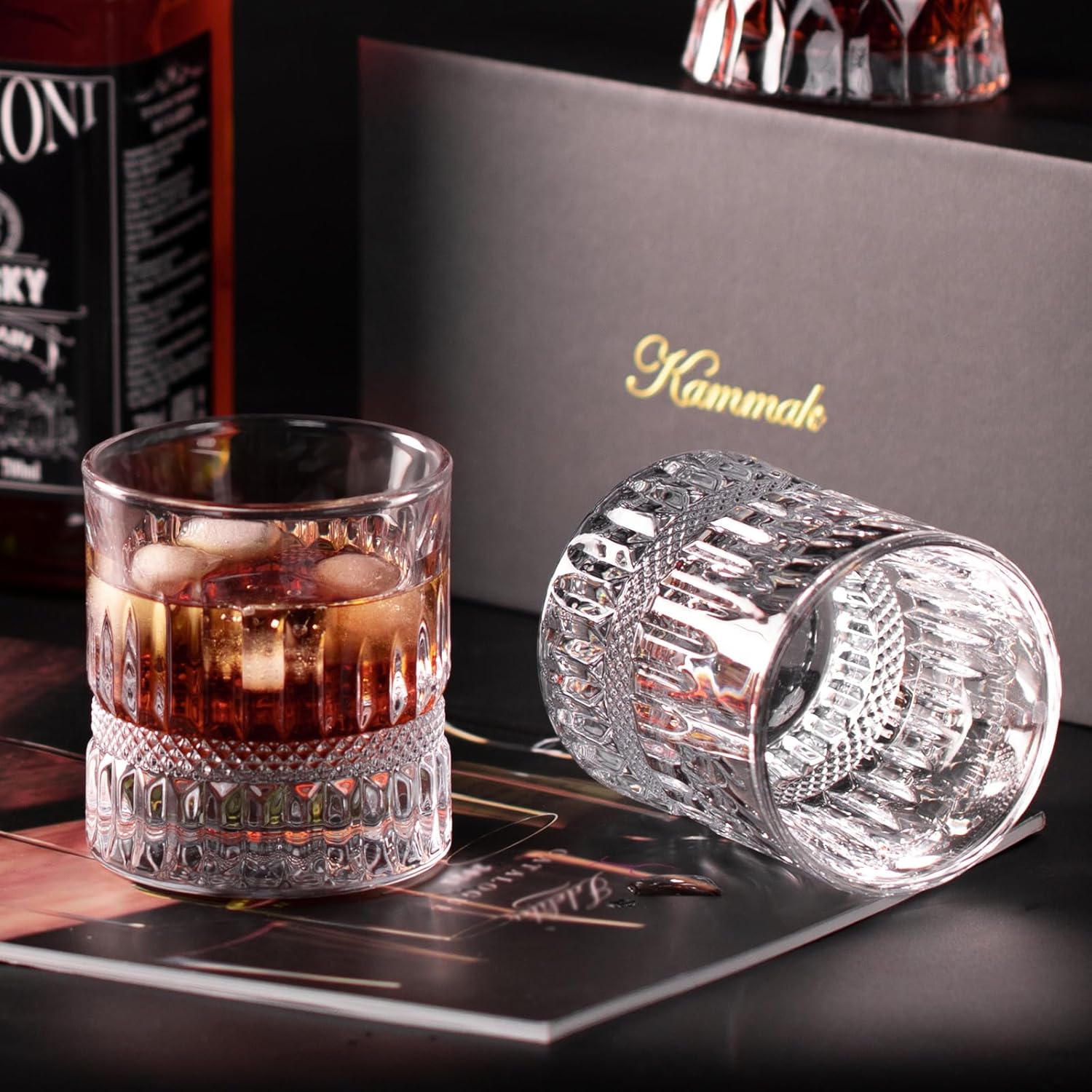 KAMMAK Whiskey Glass Set of 2, 7.05oz Old Fashioned wine Glass for Scotch, Cocktails, Rum, Vodka in Bar And Party Gifts for Men, Whisky Lovers, Wedding, Anniversary, Birthday