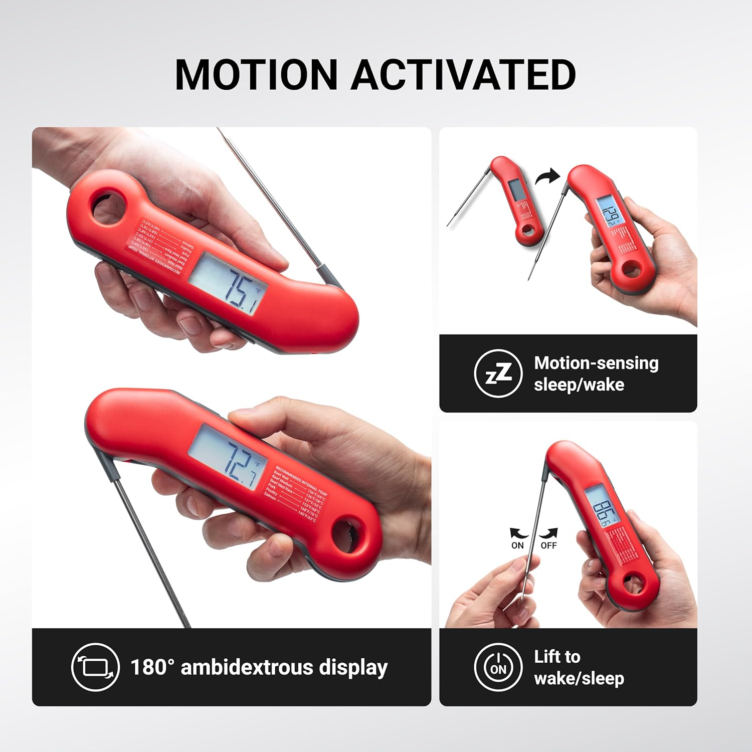 Professional Meat Thermometer Digital, Ultra-Fast 0.5 Sec Instant Read, NIST Certified ±0.5°F Accuracy, 100% Waterproof, Auto-Rotating Backlit Display, Lift-to-Wake, for BBQ/Cooking/Candy