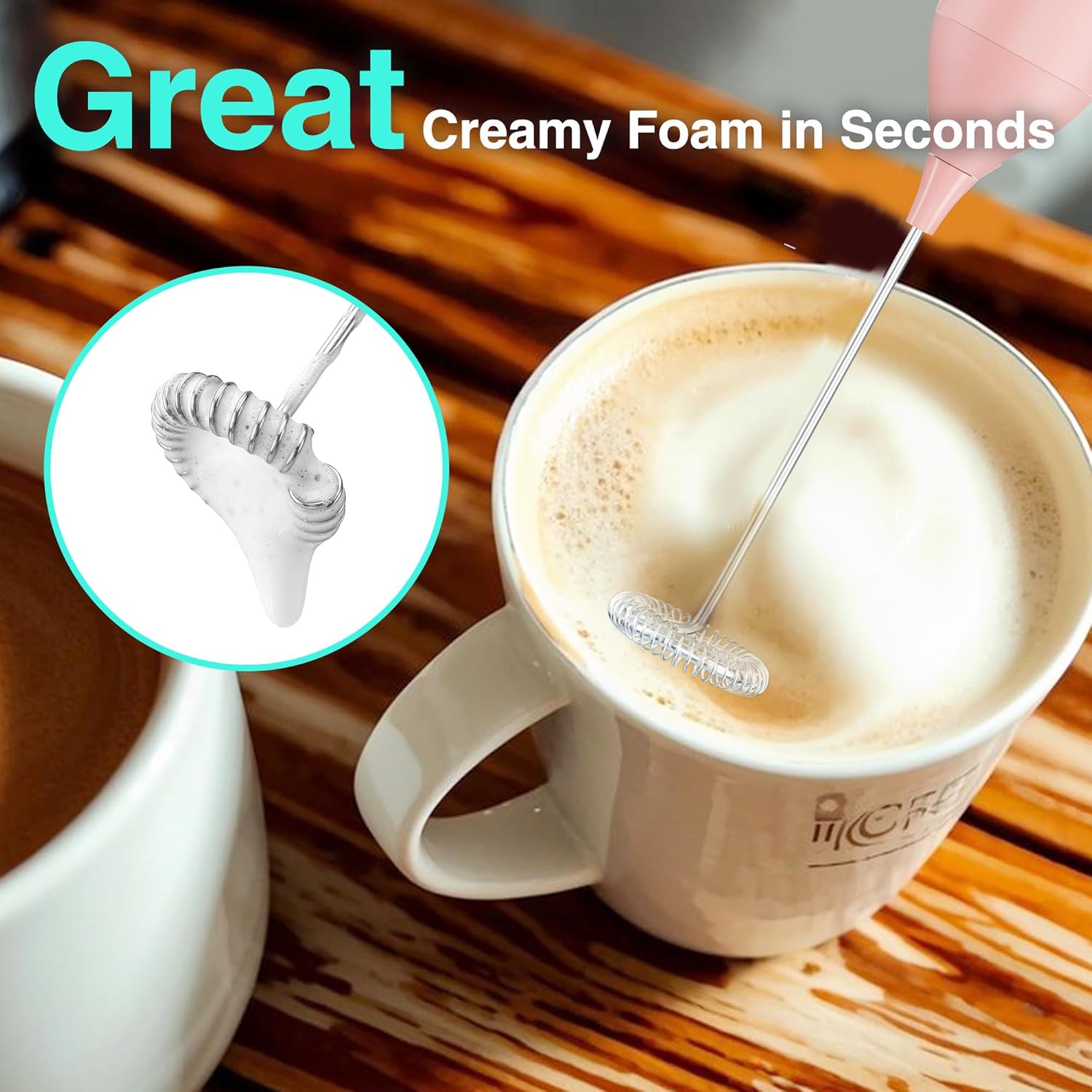 - Ideal for Coffee Enthusiasts: Skip the coffee shop run and enjoy lattes, cappuccinos, matcha, hot chocolate, powdered drinks, or iced coffee at home with this milk frother, our handheld frother blends a lightweight build with an ergonomically designed soft-touch. This electric frother embodies unmatched convenience, serving as an ideal gift for friends and family. Let them relish the ease of preparing delightful homemade chocolate or cappuccino beverages