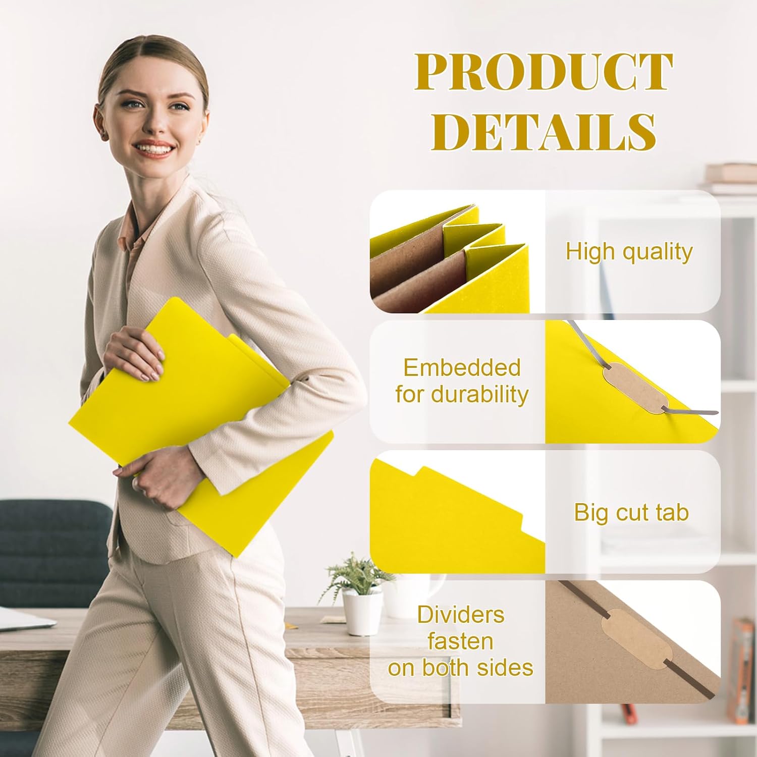 24 Pcs Classification Folders Letter Size, Back to School Supply for Teacher, Student, 2 Pocket Dividers Pressboard File Folder Bulk with 2 Fasteners, 2 in Expanding File Organizer (Yellow)