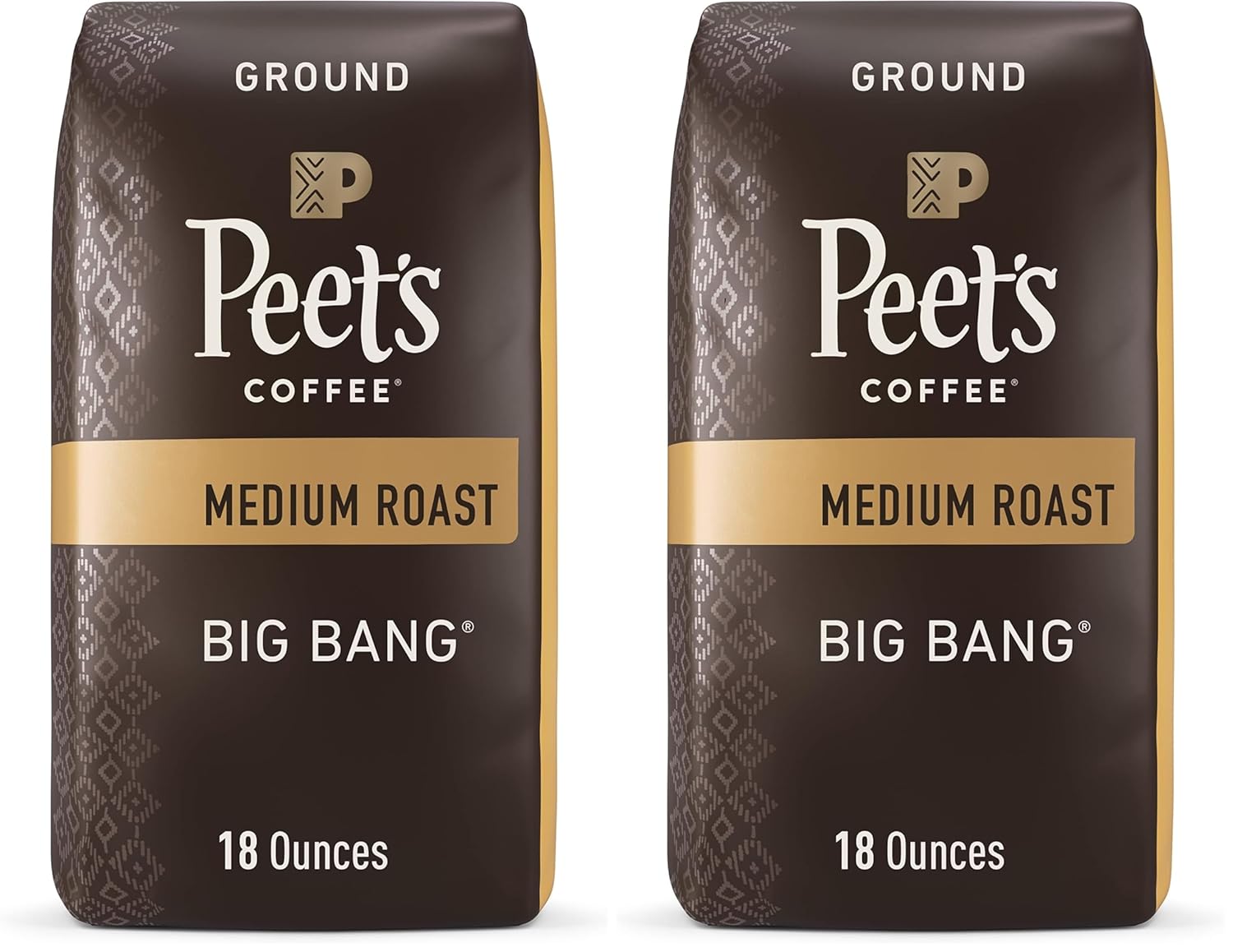 - Contains two (2) 18 Ounce Bags of Peet's Big Bang Ground 100% Arabica Coffee