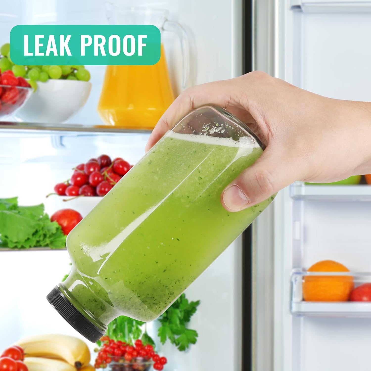 16 oz Glass Juice Bottles with Lids 3 Pack, Reusable Glass Drink Bottles,500ml Water Drinking Bottle for Milk,Juicing,Kombucha,Ginger,Beverage Glassware,Juice Drinking Jars