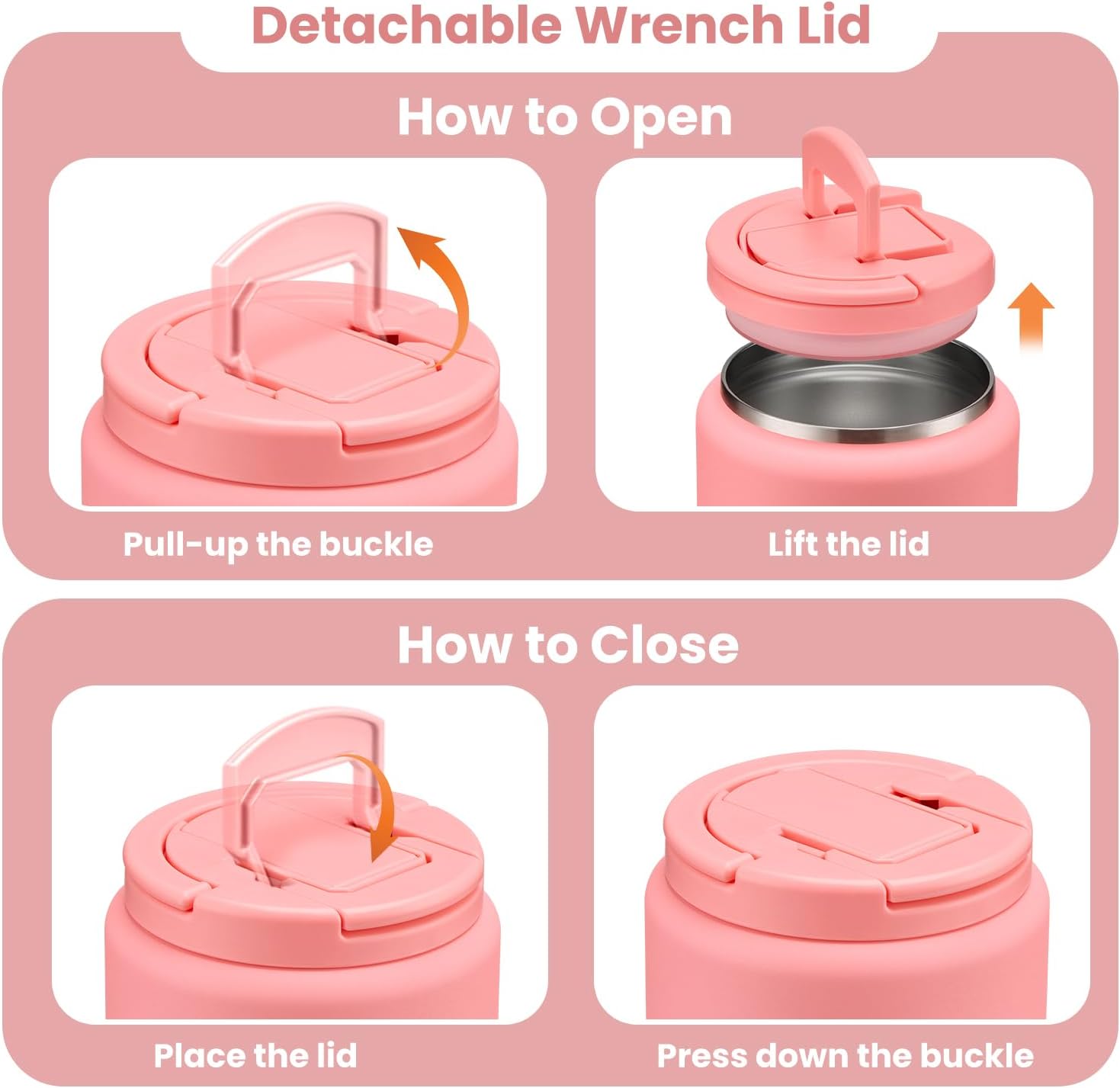 - New Buckle of Lid: The food containers feature a press-seal construction, allowing you to simply pull the handle upwards to 90° to open the lid/ 90° downward closure. This design is maintaining vacuum no need to rotate the lid open . Additionally, the container comes equipped with a carrying handle, making it convenient for your child to carry it. Whether at school, an outdoor outing, or a family gathering, this user-friendly design empowers children to confidently enjoy their delicious meals.