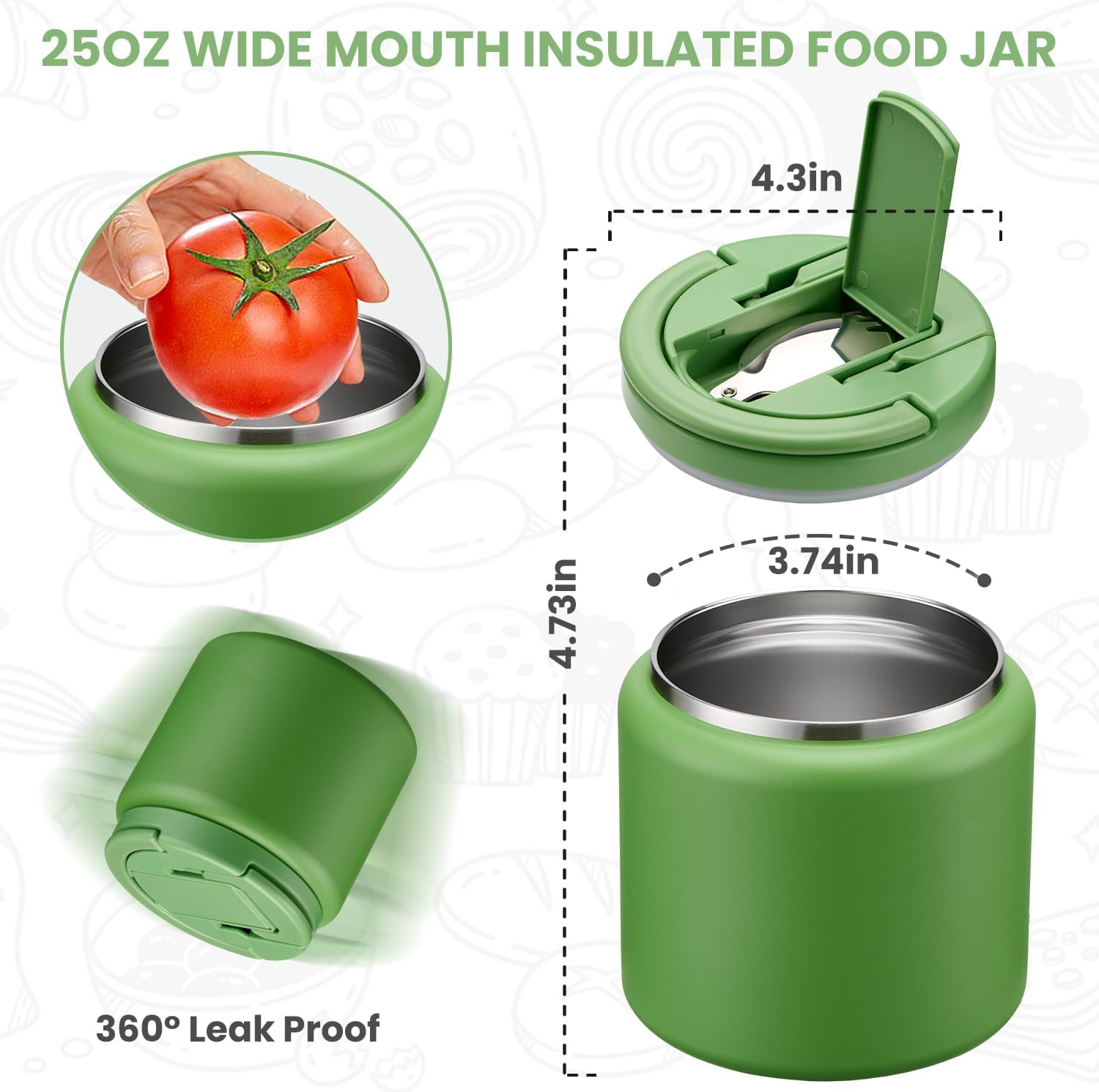 - Wide Mouth Design: 25.5 oz, 3.74 inches Wide mouth design allows food to fit more easily into the jar and allows for easier cleaning of the inside of the jar. Hand washing of soup thermo containers is recommended to extend product life and keep the pattern on the outside of the product longer.
