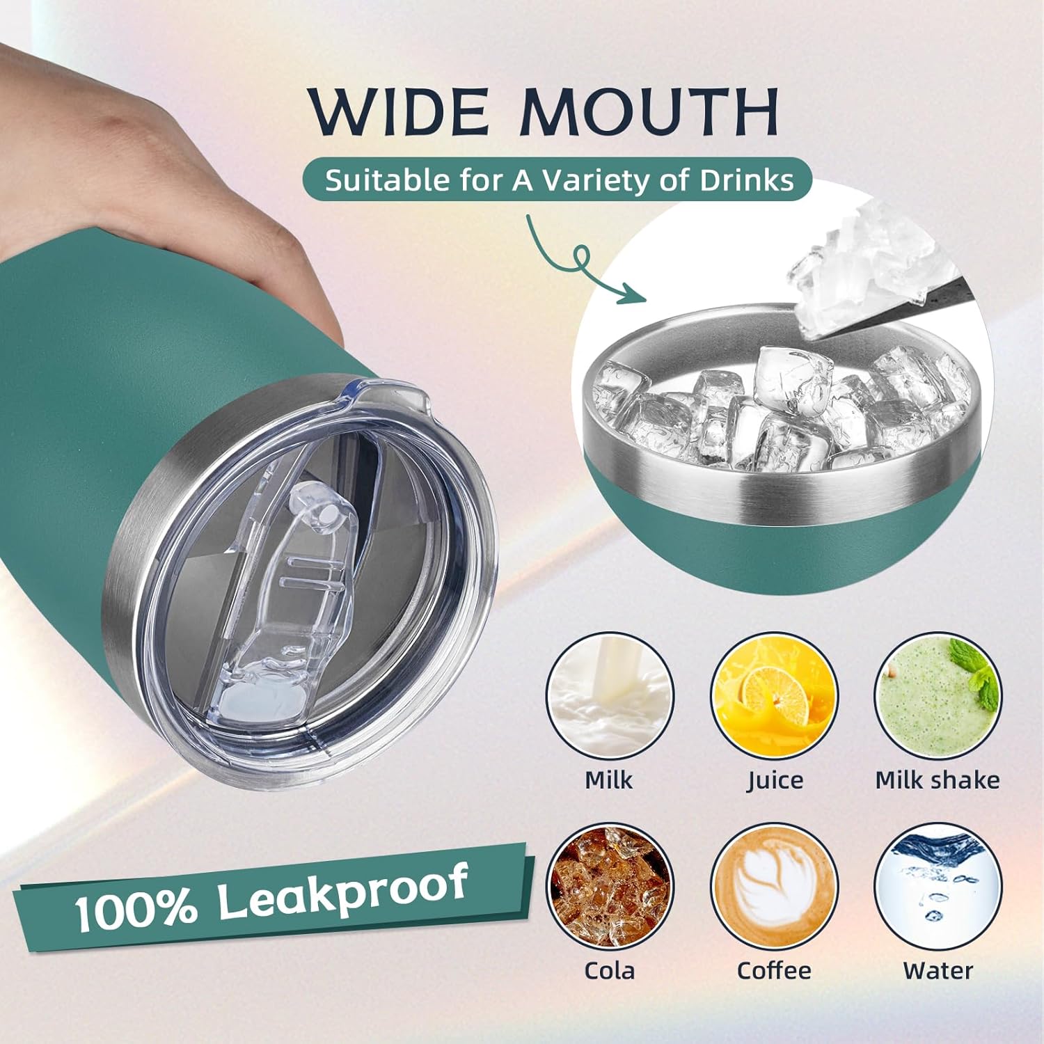 MEZMUT 20oz Coffee Tumbler with Lid and Straw Double Wall Vacuum Insulated Cup Stainless Steel Travel Mugs Insulated for Hot and Cold Leakproof Powder Coated Tumbler for Indoor and Outdoor(Deep Green)