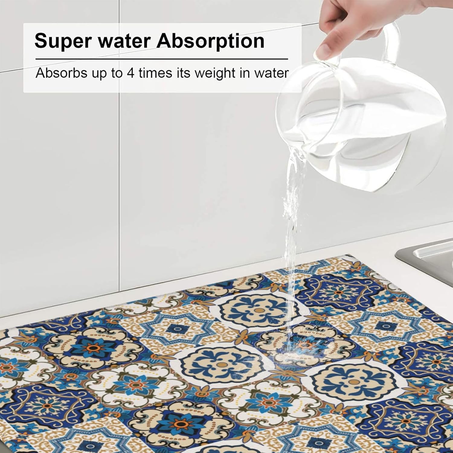 Colorful Moroccan Dish Drying Mat, Highly Absorbent Microfiber Kitchen Counter Pad Reusable Washable, 16*18"