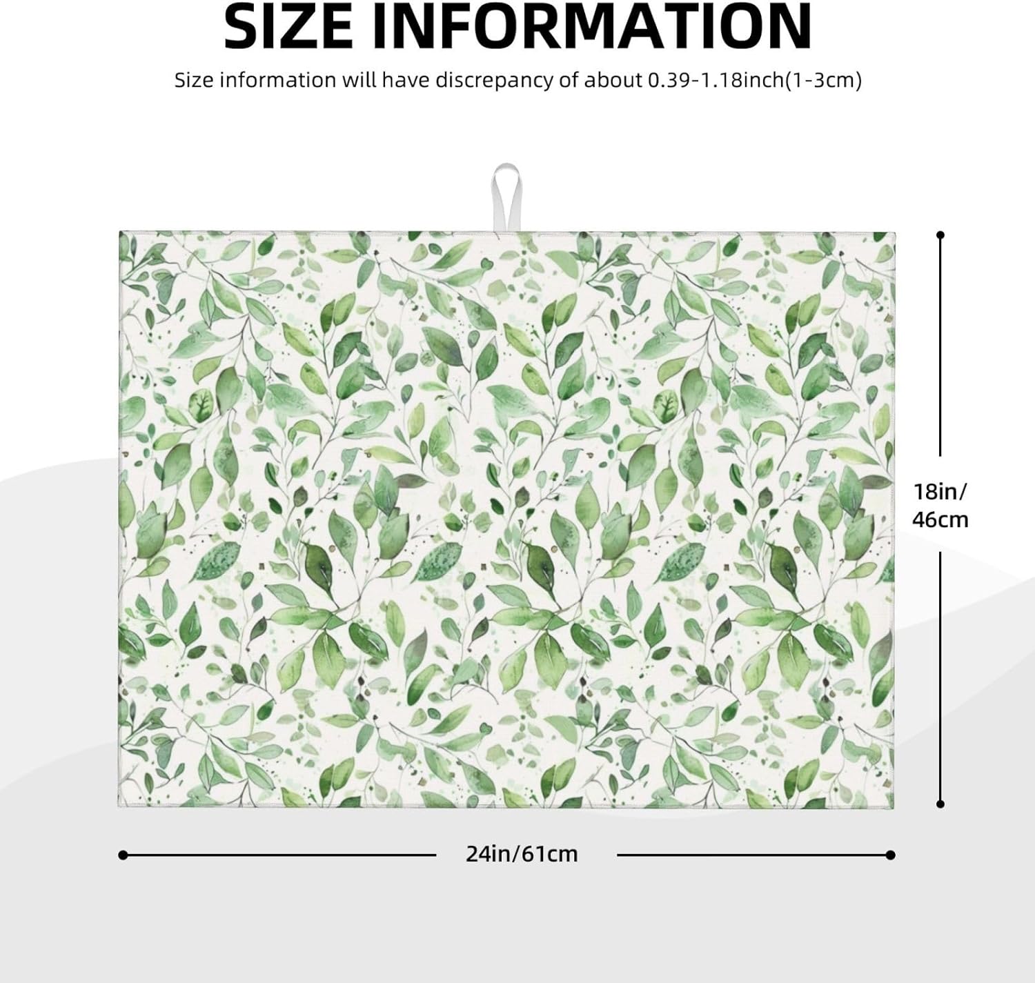 Green Leaves Dish Drying Mat, Highly Absorbent Microfiber Kitchen Counter Pad Reusable Washable, 18*24"