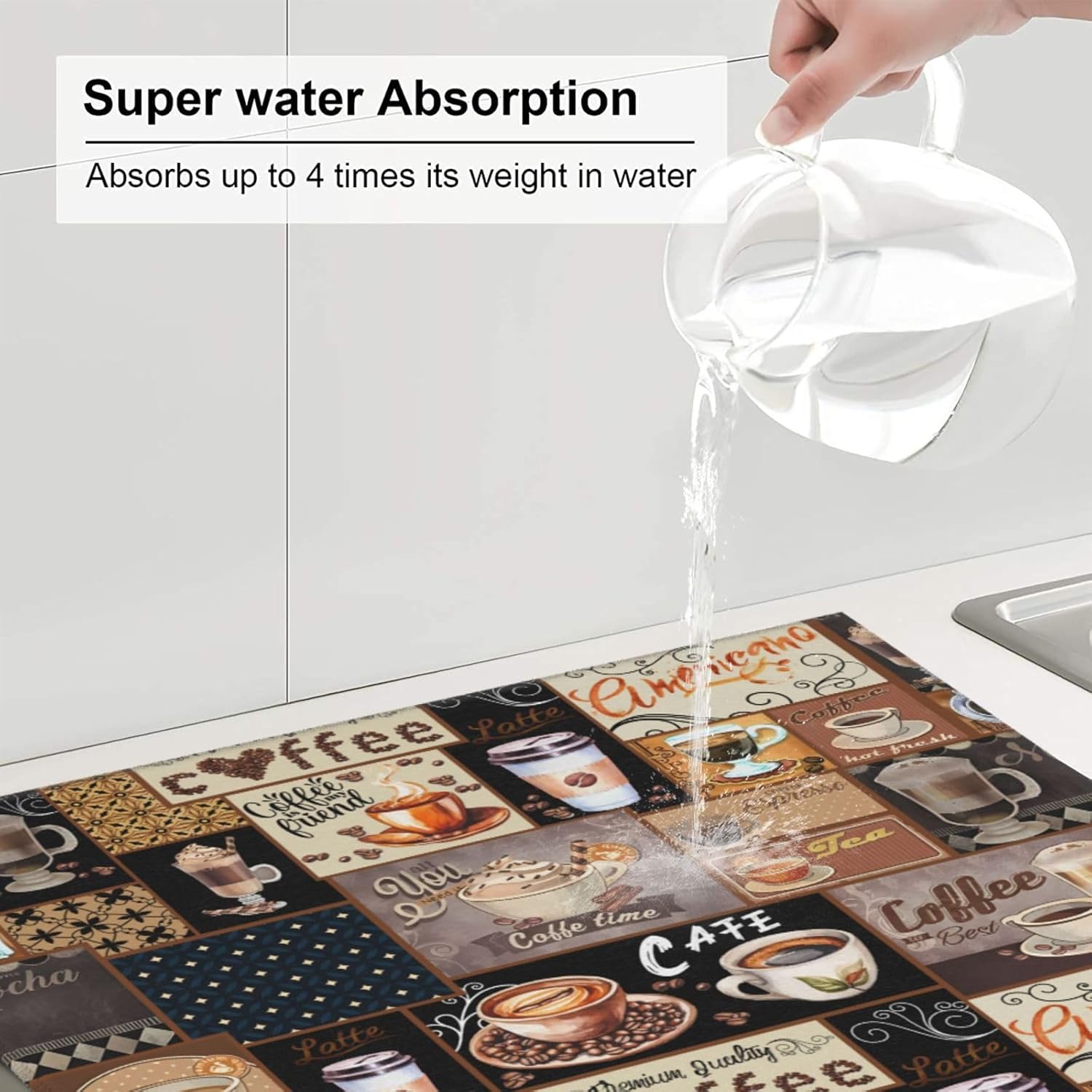 - Widely Used -- The Dish Drying Pad Can Be Placed Anywhere You Need To Absorb Water, Such As Can Be Used On Kitchen Counters, Countertops, Dining Table, Sinks, And Under Dish Racks, Coffee Makers, Coffee Machines, Coffee Pots, Espresso Machines, Coffee Cups, Water Dispensers, Blenders, Also As A Pet Food Mat, Place It Under Pet Drinking Pot To Keep The Floor Dry