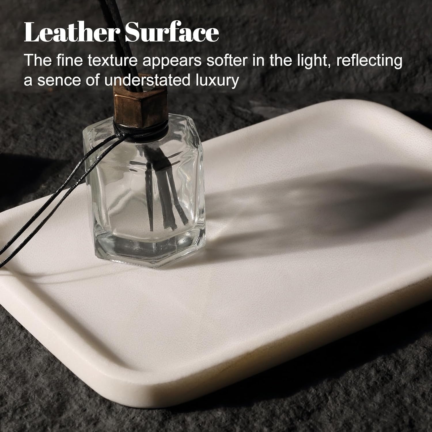 - 【Leather Suface】The decorative tray is use leather surface finishing process. The leather surface has a fine texture that is comfortable to the touch and more non-slip. It appears softer in the light, reflecting a sense of understated luxury