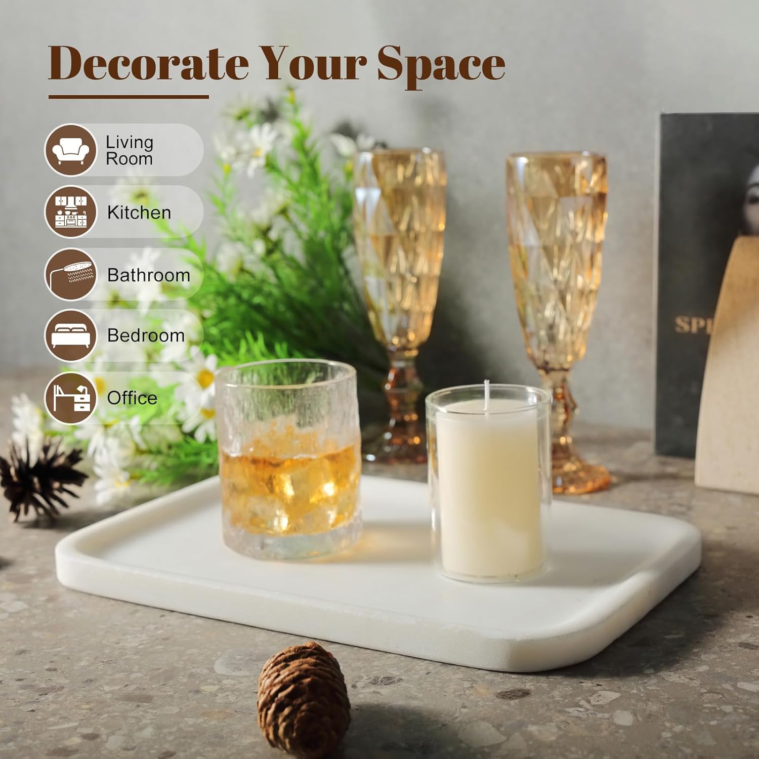 - 【Easy To Clean】The rectangle tray measures 11.8 x 7.9 x 0.7 inches, perfect for organizing and displaying your daily essentials. The marble vanity plate is easy to clean by simply wiping with a damp cloth to remove dirt and stains. Four non-slip pads on the bottom of the tray protect the marble from sliding and scratching the surface