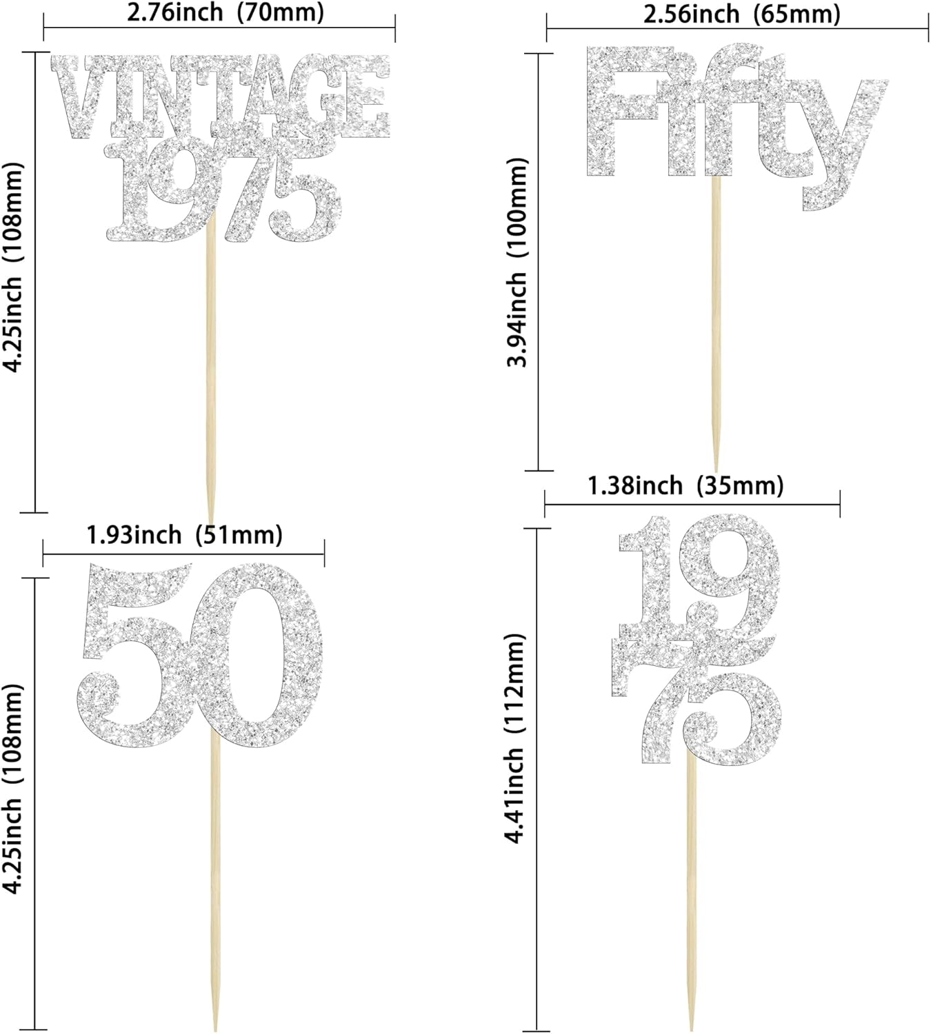 Gyufise 24Pcs 50th Birthday Cupcake Toppers Cheers to 50 Fabulous Fifty Vintage 1975 Cupcake Picks 50th Birthday Wedding Anniversary Party Cake Decorations Supplies Silver