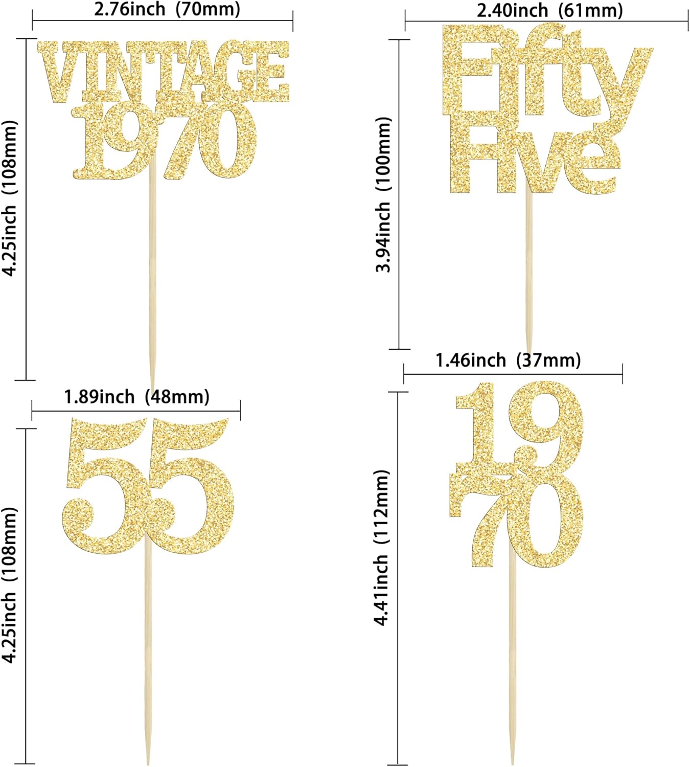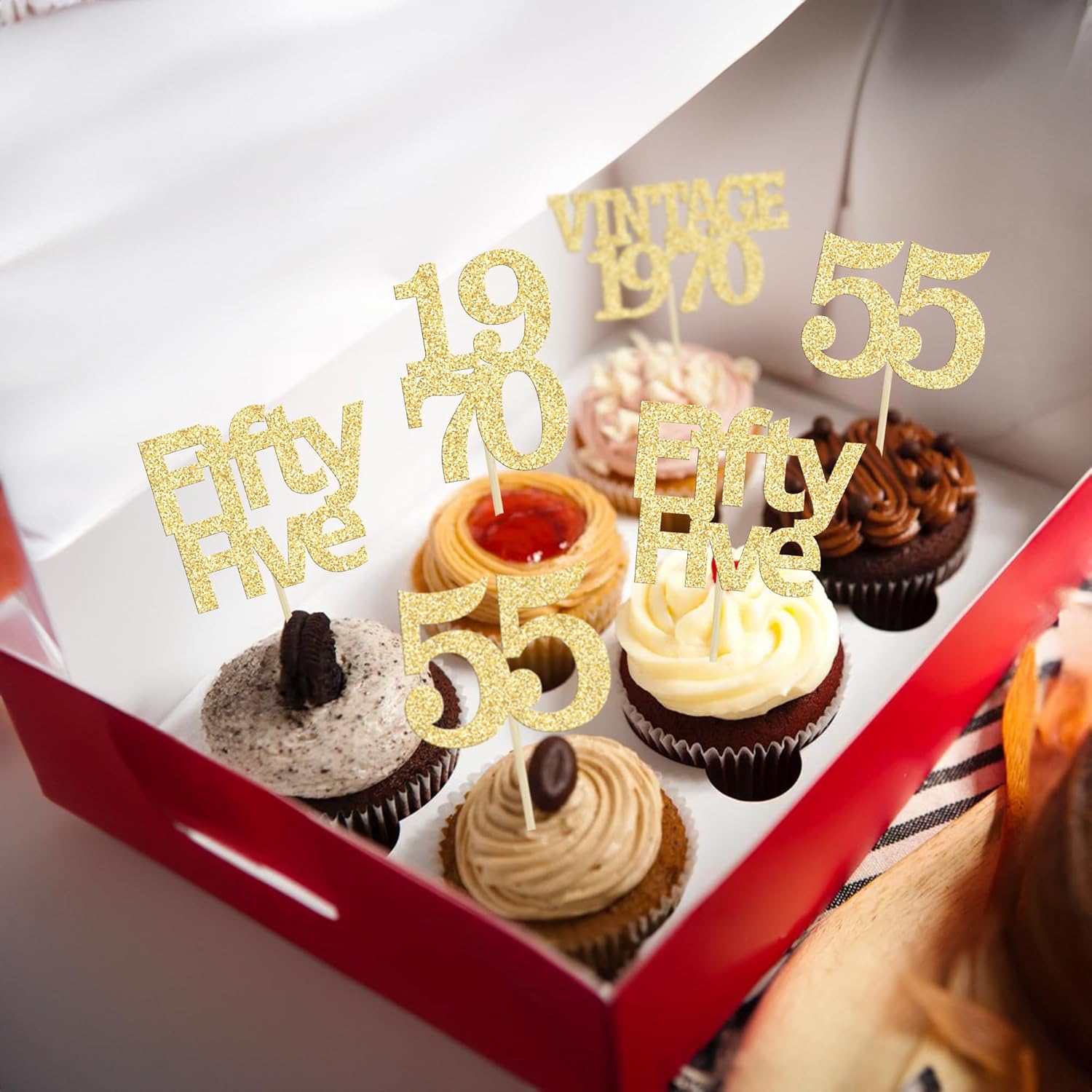 Gyufise 24Pcs 55th Birthday Cupcake Toppers Glitter Cheers to 55 Fabulous Fifty Five Vintage 1970 Cupcake Picks 55th Birthday Wedding Anniversary Party Cake Decorations Supplies Gold