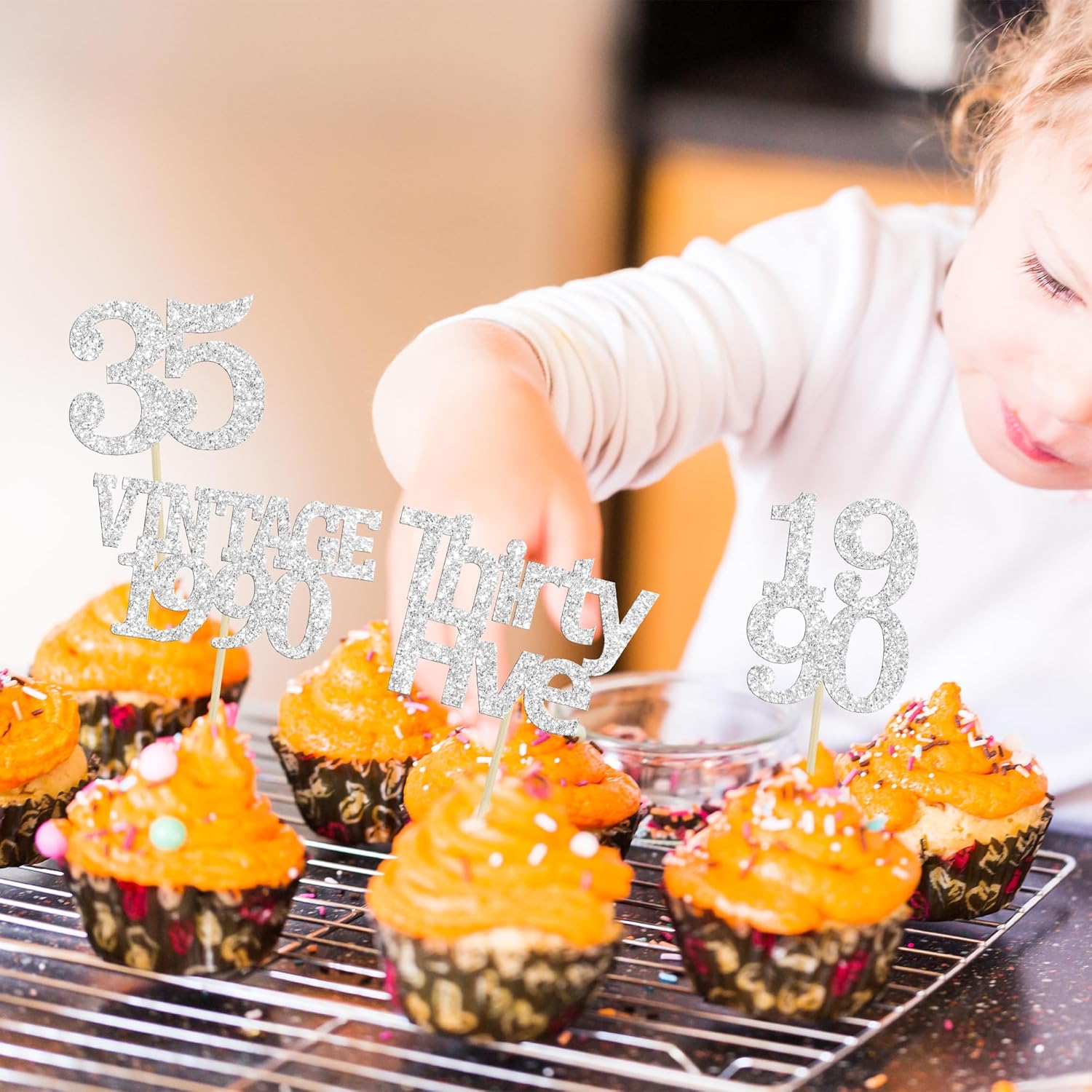 - 35th Birthday Cupcake Toppers are so cute and good for 35th birthday party, 35th wedding anniversary party, 35th birthday cupcake decorations.They can make your cupcake more attractive and bring the fun to your party. You can also apply them for ice cream, fruits, cookies and other desserts.