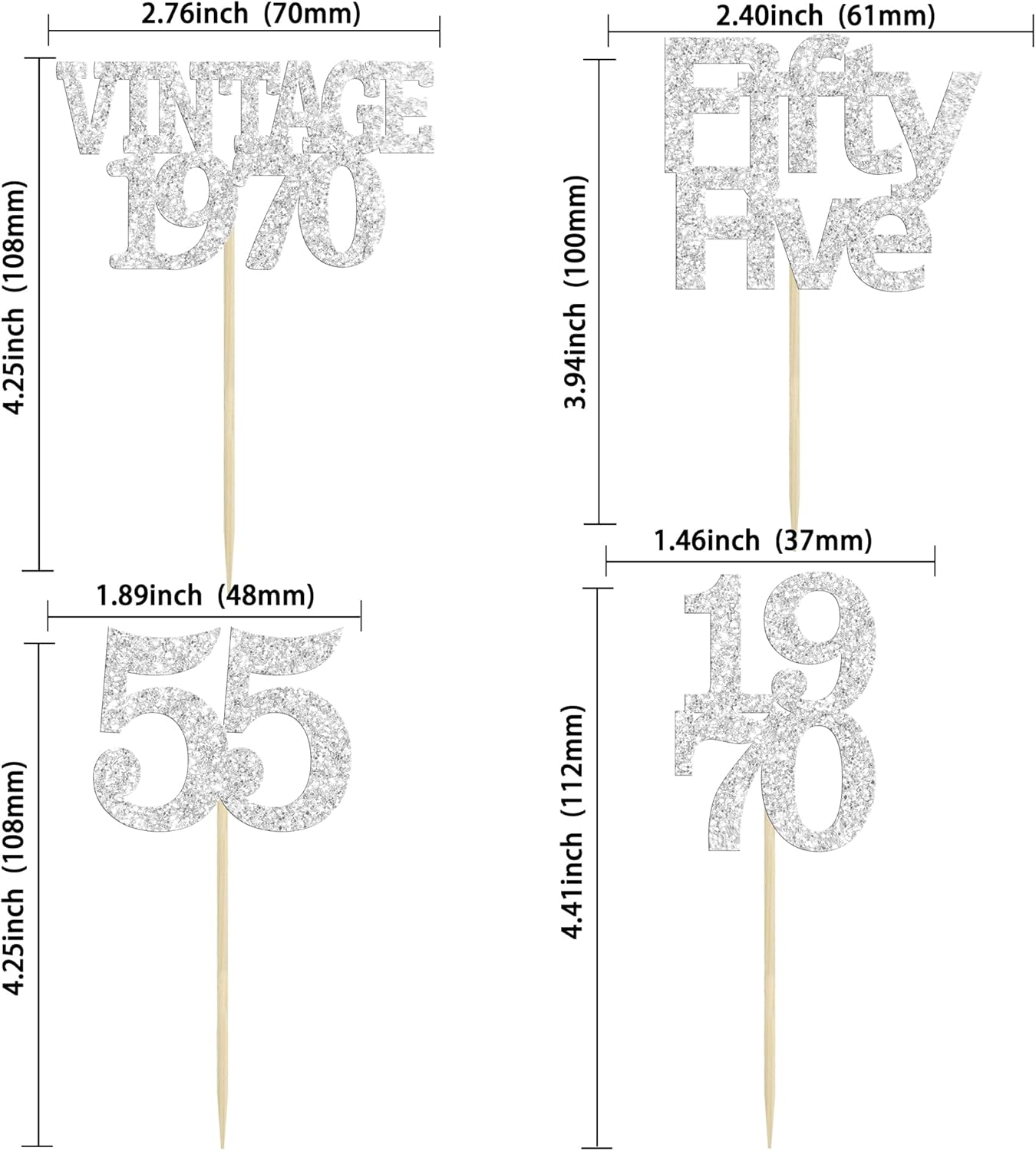 - Package included: 24Pcs 55th Birthday Cupcake Toppers. Comes with assembled, so you can insert into your cake directly, which make your cake more interesting.