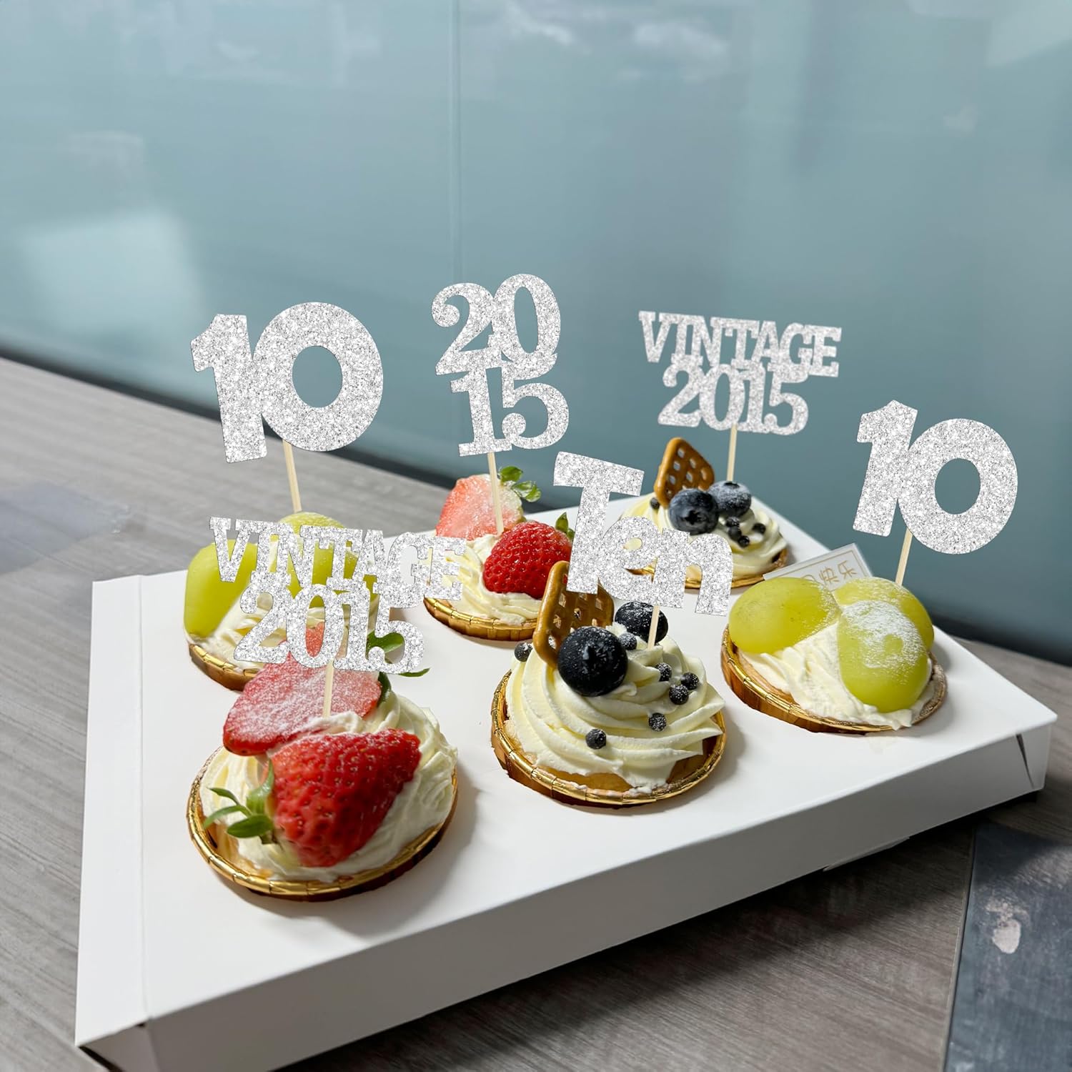 Gyufise 24Pcs 10th Birthday Cupcake Toppers Glitter Ten Vintage 2015 Hello 10 Years Birthday 10 Cupcake Picks Double Digits Cake Decorations for Happy 10th Birthday Anniversary Party Supplies Silver