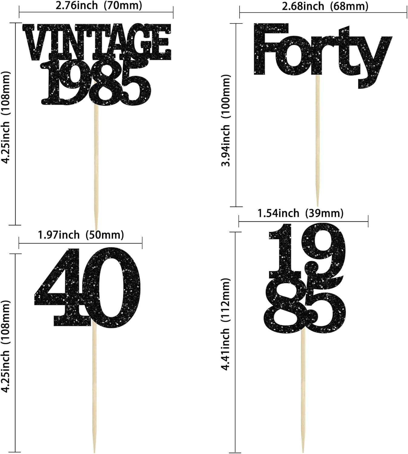 Gyufise 24Pcs Vintage 1985 Cupcake Toppers Glitter Cheers to 40 Fabulous Forty Cupcake Picks 40th Birthday Wedding Anniversary Party Cake Decorations Supplies Black