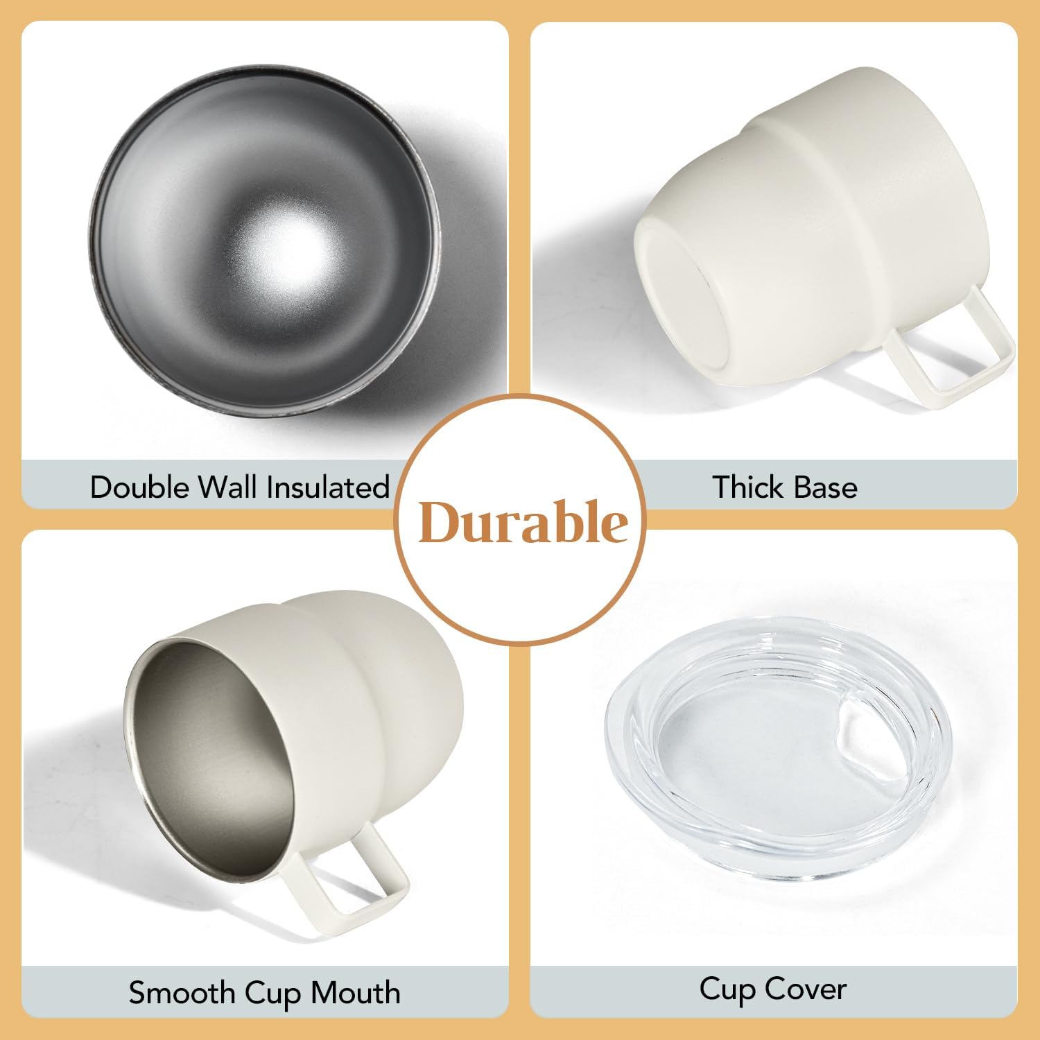 - DOUBLE WALL STAINLESS STEEL: Our espresso cups are made from double wall 18/8 stainless steel, vacuum insulated. Compared to ceramic lining, stainless steel lining are more durable, anti-scald, odourless, not break easily, and better at retaining hot or cold. Whether it's a hot coffee or an iced coke, this small cup is up to the task!