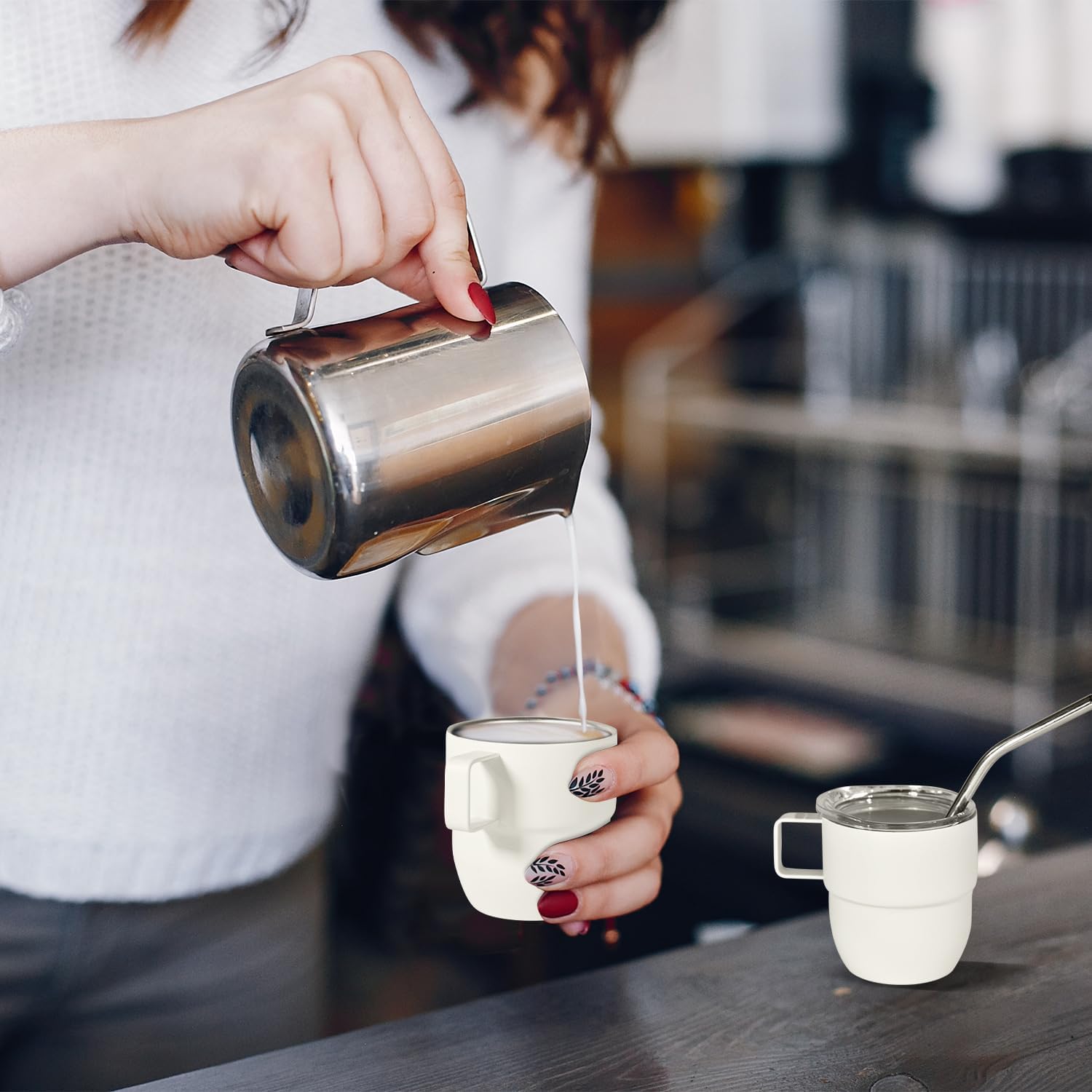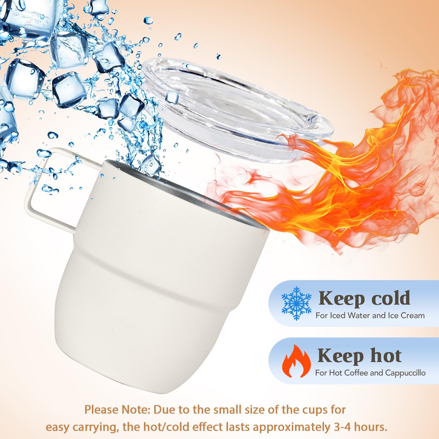4oz Stackable Cup, Vacuum Insulated Espresso Cup Set of 2, Espresso Mug for Coffee, Double Wall Stainless Steel Mini Tumbler Shot Glasses with Straw and Lid (B-white2P, 4oz)