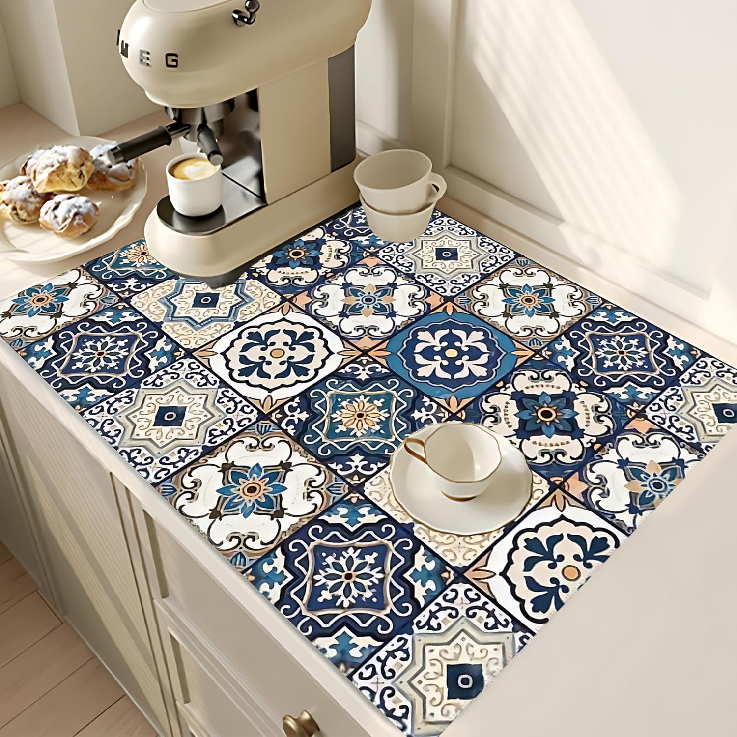 - 【Exquisite Design】The combination of interesting and cute pattern design and high-quality printing technology makes the dish drying mats and faucet mats perfectly presented.It absorbs water efficiently and is also an exquisite kitchen decoration.