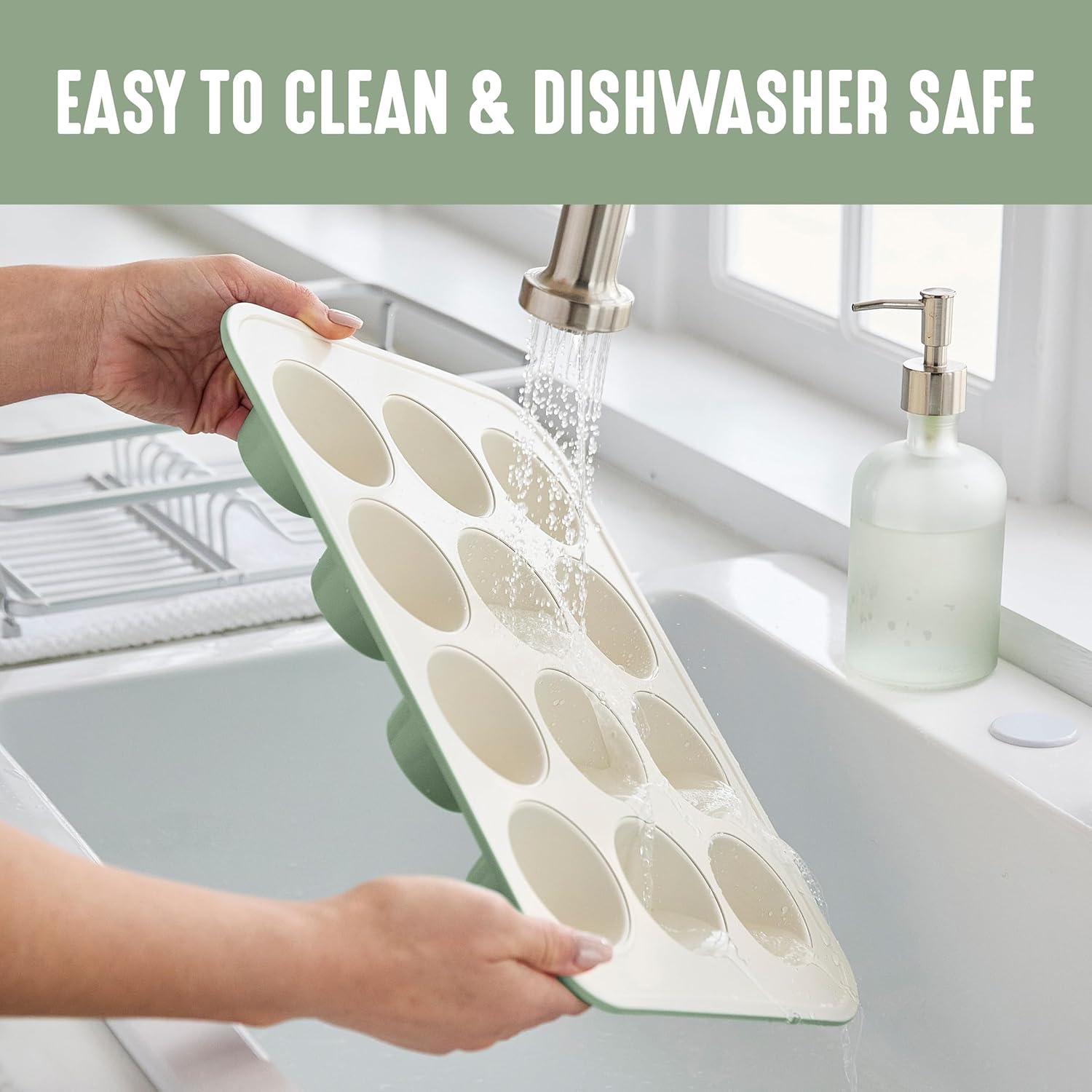 GreenLife 12-Cup Muffin Pan, Healthy Ceramic Nonstick Bakeware, PFOA & PFAS-Free Cupcake Tray, Durable Baking Pan, Versatile Kitchen Essential, Easy Clean Muffin Mold, Nonstick Baking Sheet, Sage