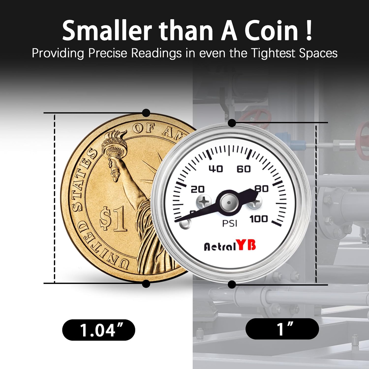 - COMPACT 1-INCH DIAL: This mini pressure gauge features a space-saving 1 inch dial that provides clear, easy-to-read pressure readings, making it ideal for tight spaces where precision is crucial.