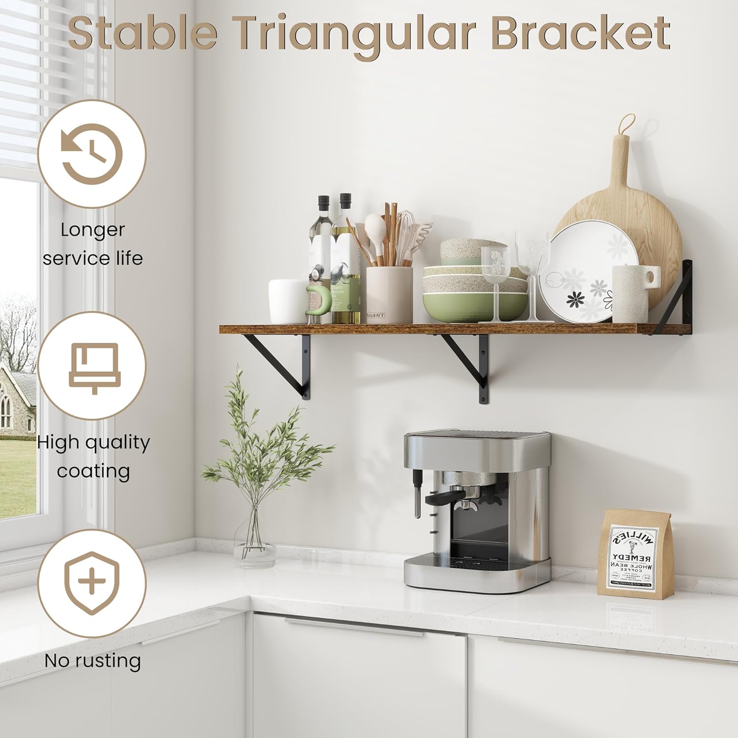 - Wall Decor and Storage: These classic and practical brown floating shelves are the perfect solution to transform blank, uninspiring walls into stylish, functional displays. Showcase your favorite books, collectibles, artwork, and more with ease, adding both character and organization to any room.